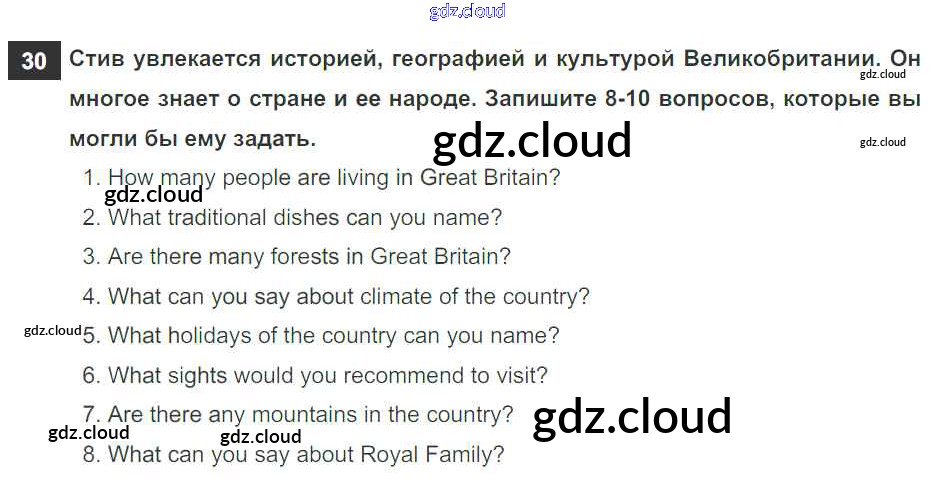 Ответ на задание 30 Рабочая тетрадь Английский язык  за 6 (шестой) класс Афанасьева, Михеева, Баранова Rainbow  2017