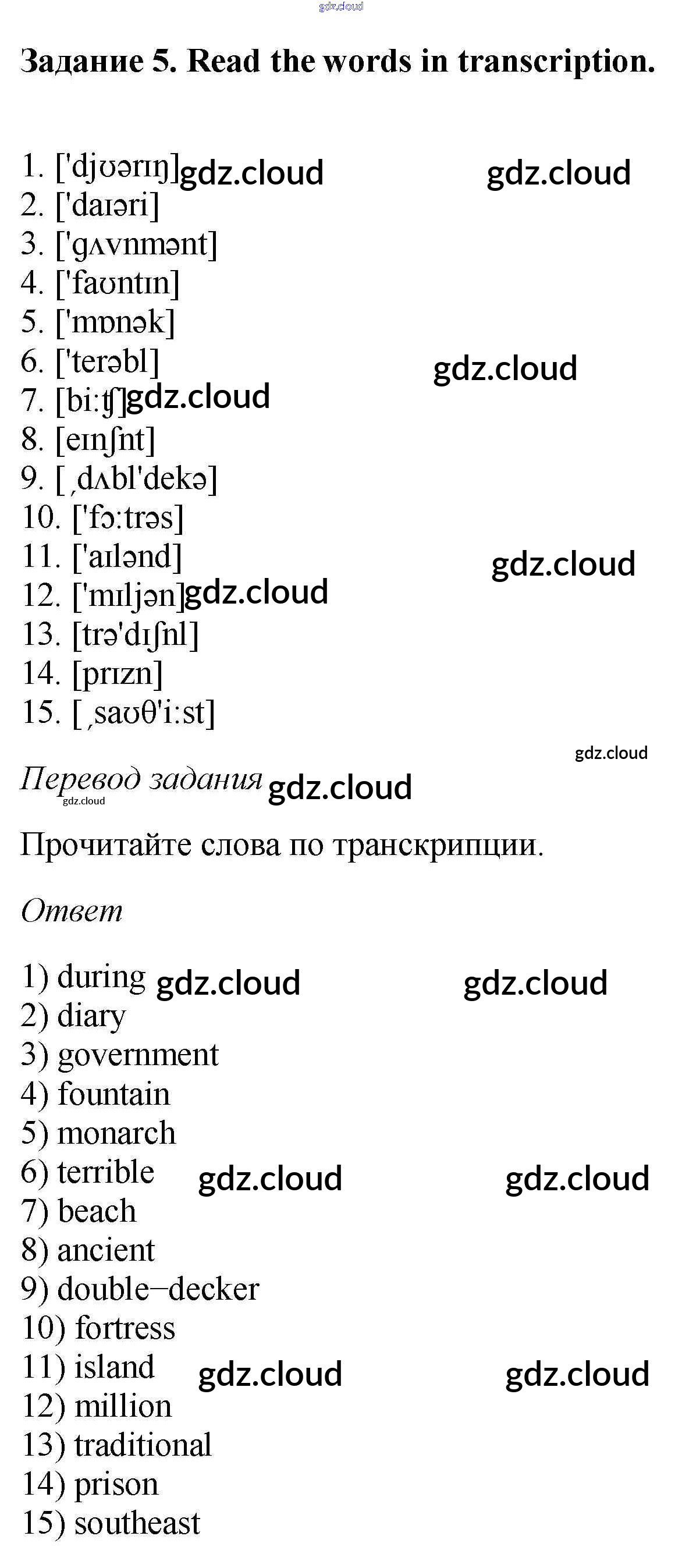 Ответ на задание 5 Рабочая тетрадь Английский язык  за 6 (шестой) класс Афанасьева, Михеева, Баранова Rainbow  2017