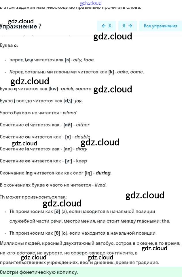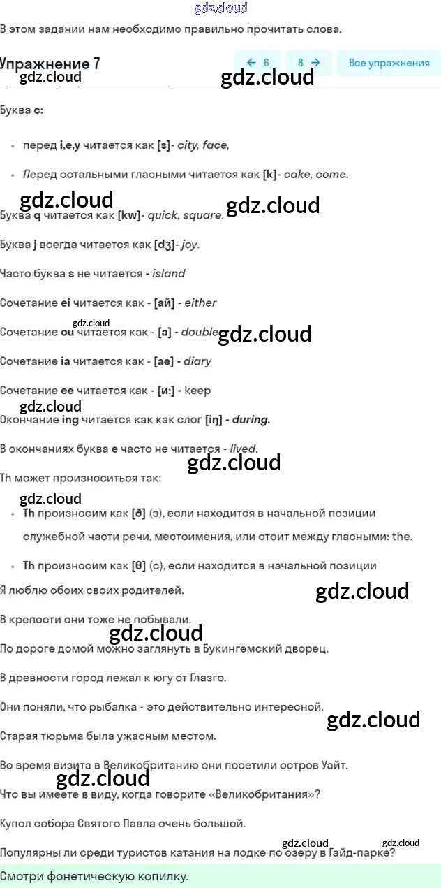Ответ на задание 7 Рабочая тетрадь Английский язык  за 6 (шестой) класс Афанасьева, Михеева, Баранова Rainbow  2017