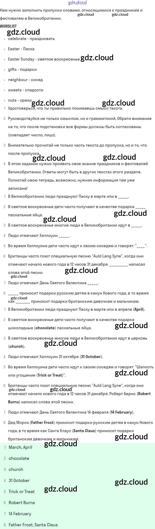 Ответ на задание 18 Рабочая тетрадь Английский язык  за 6 (шестой) класс Афанасьева, Михеева, Баранова Rainbow  2017