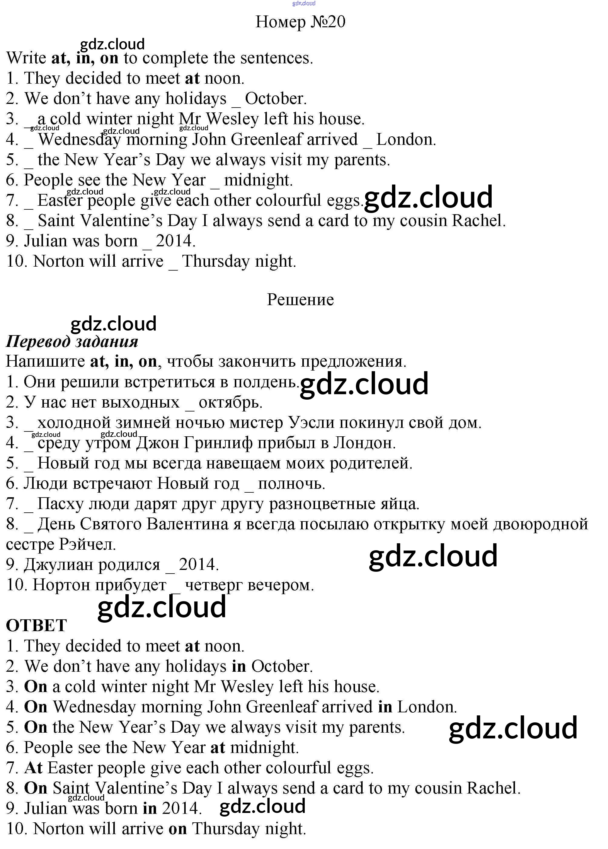 Ответ на задание 20 Рабочая тетрадь Английский язык за 6 (шестой) класс Афанасьева, Михеева, Баранова Rainbow 2017