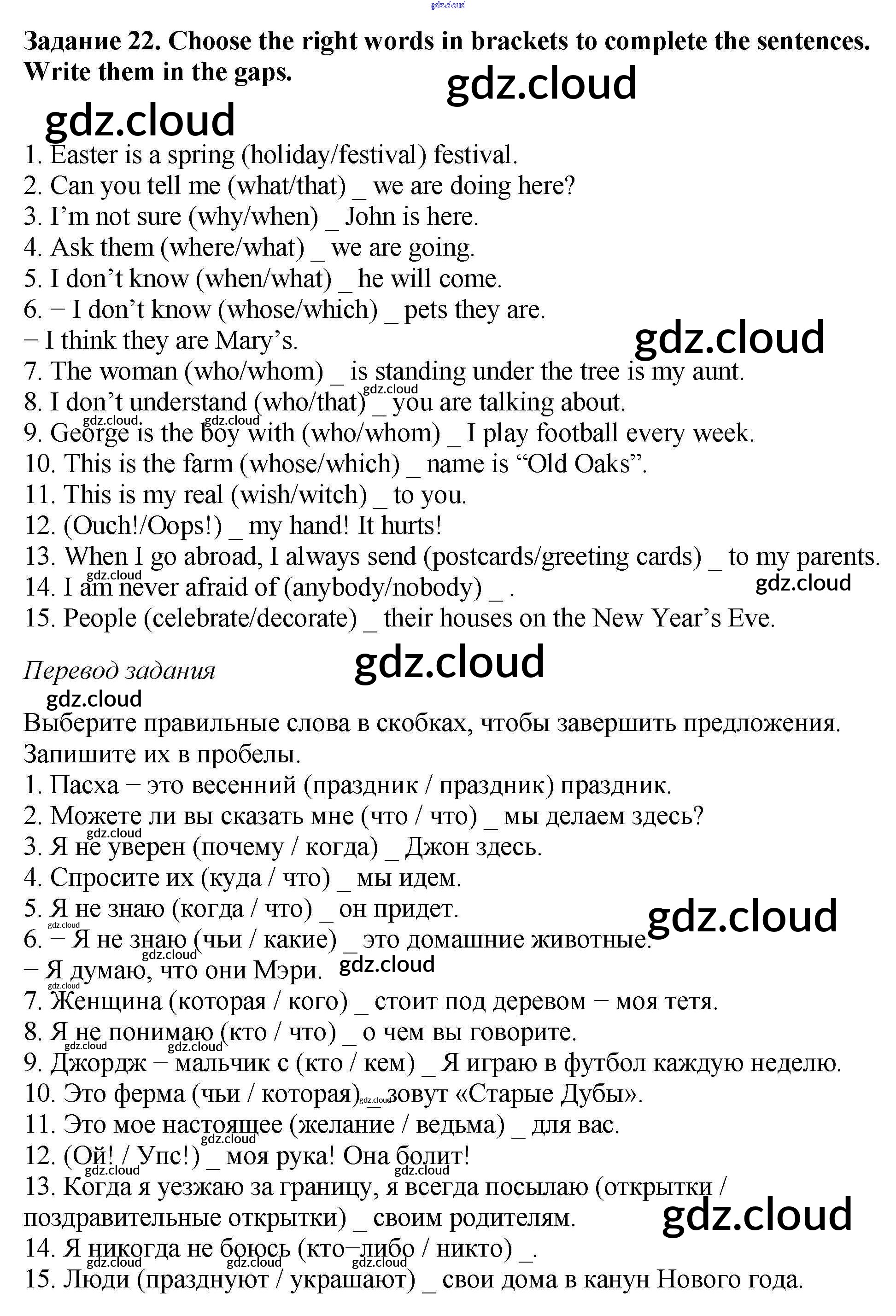 Ответ на задание 22 Рабочая тетрадь Английский язык  за 6 (шестой) класс Афанасьева, Михеева, Баранова Rainbow  2017