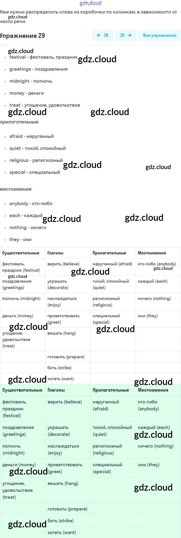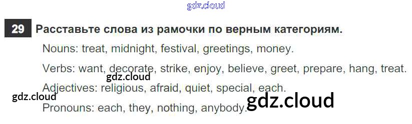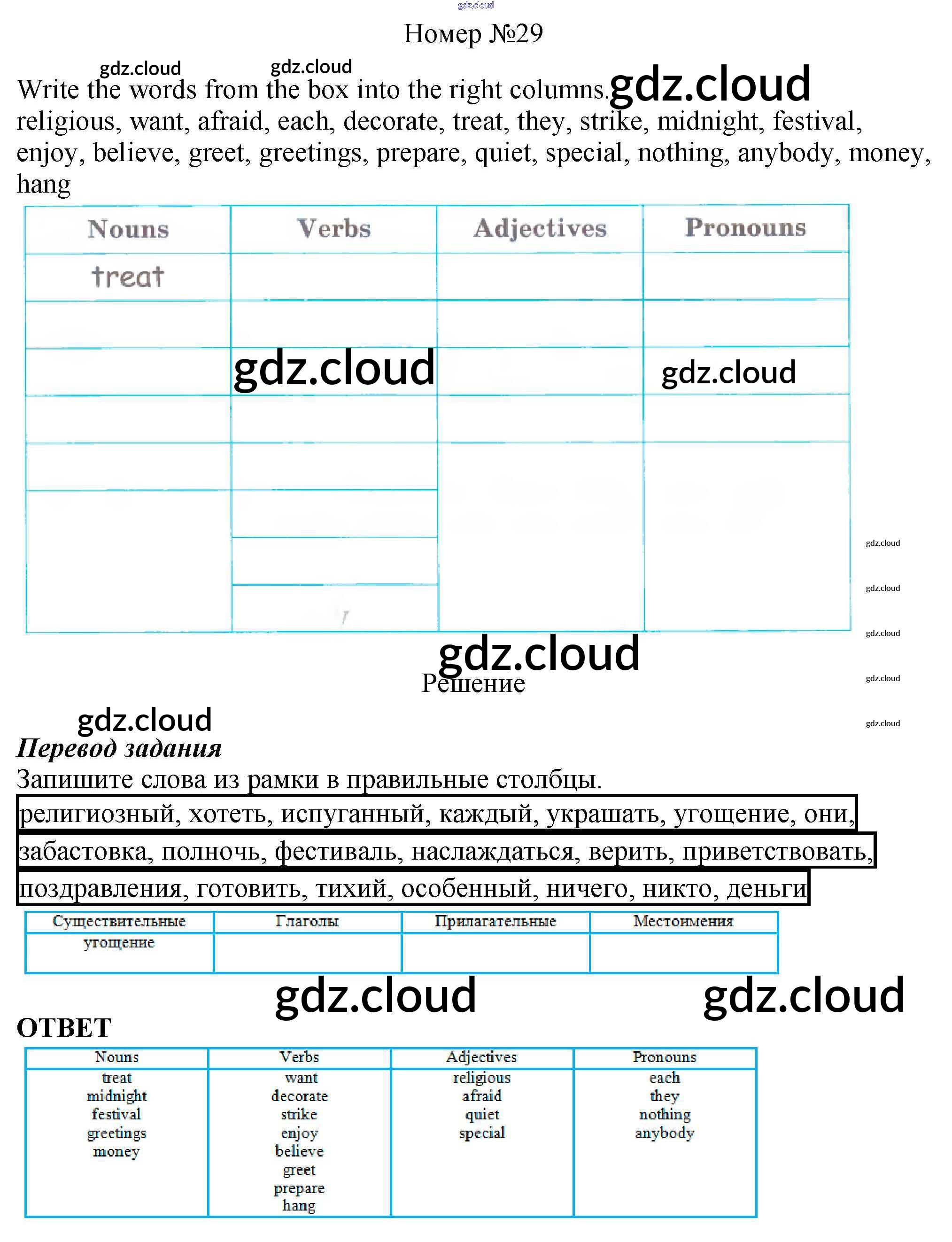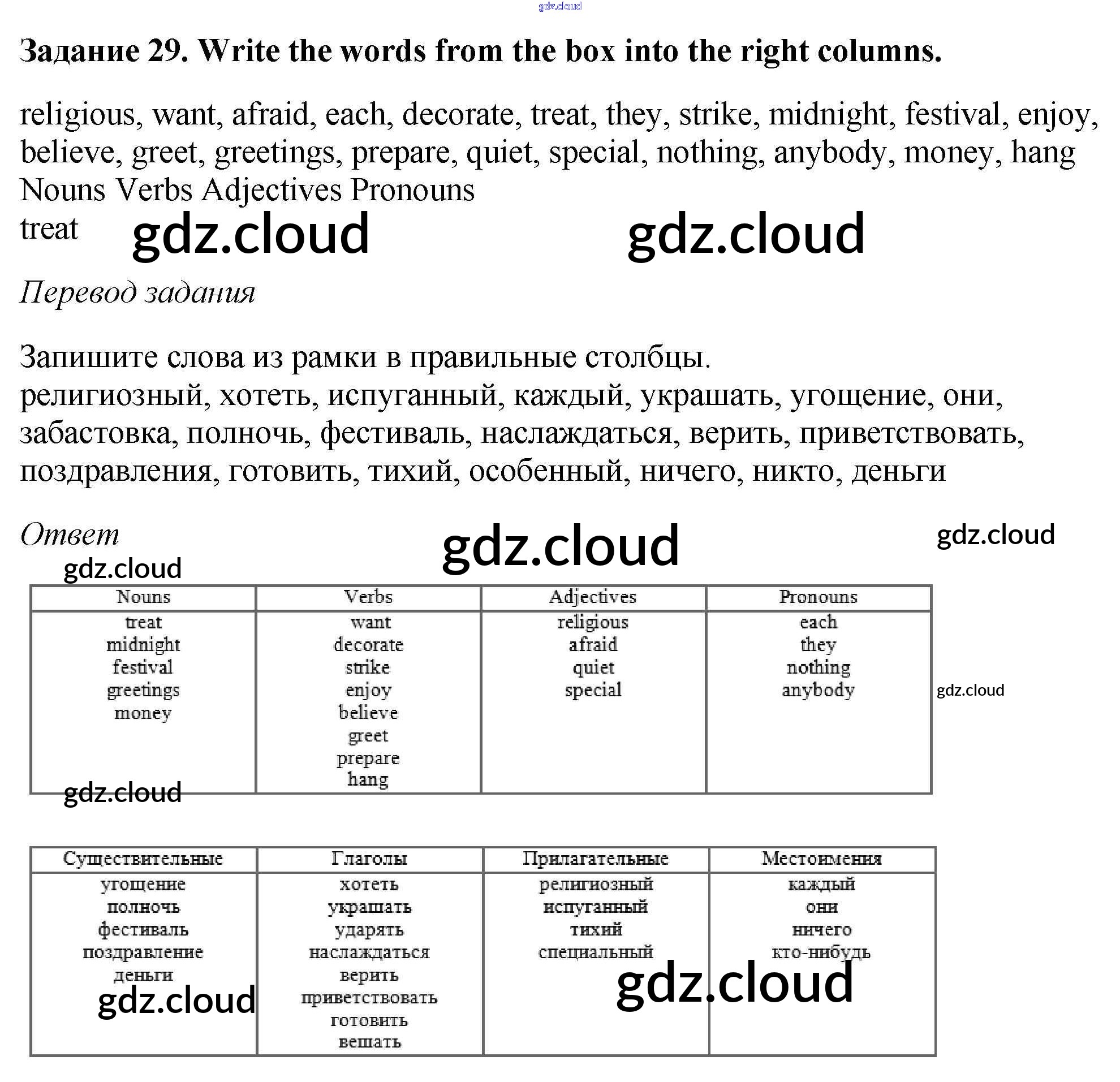 Ответ на задание 29 Рабочая тетрадь Английский язык  за 6 (шестой) класс Афанасьева, Михеева, Баранова Rainbow  2017