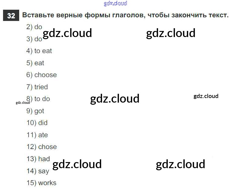 Ответ на задание 32 Рабочая тетрадь Английский язык  за 6 (шестой) класс Афанасьева, Михеева, Баранова Rainbow  2017