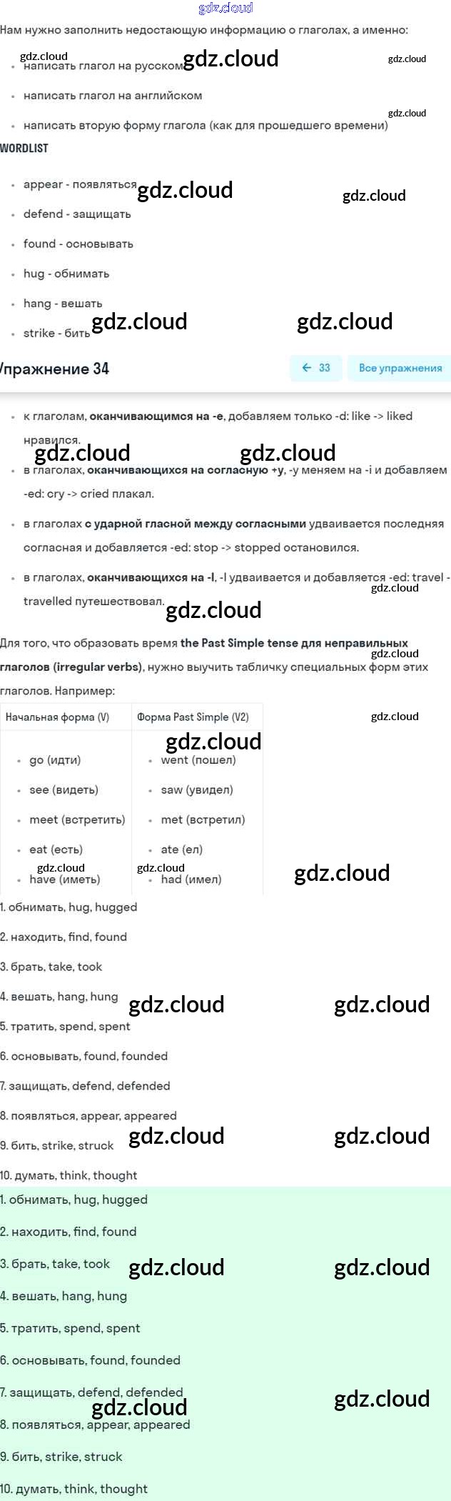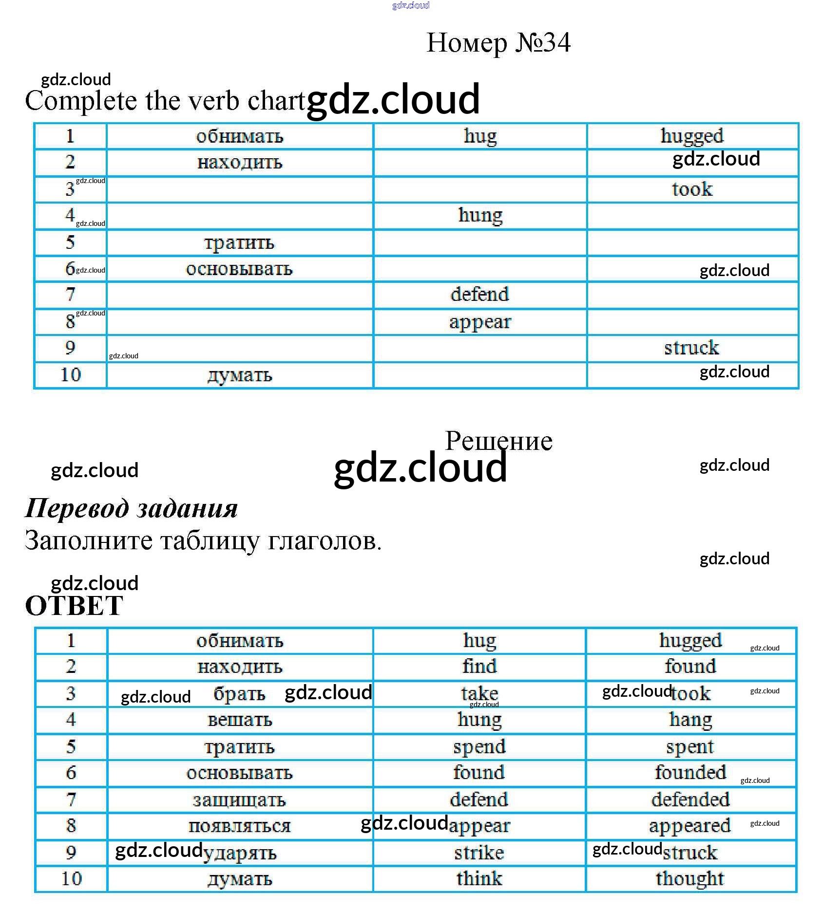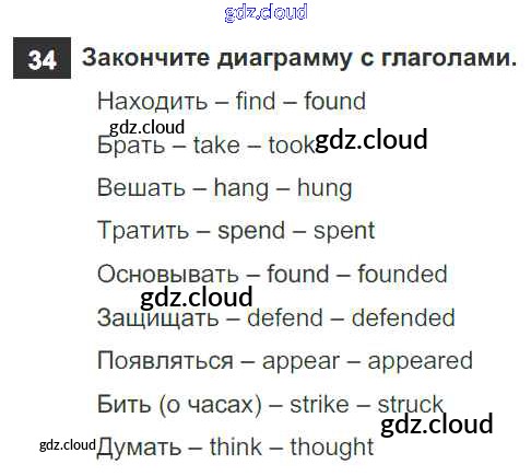 Ответ на задание 34 Рабочая тетрадь Английский язык  за 6 (шестой) класс Афанасьева, Михеева, Баранова Rainbow  2017