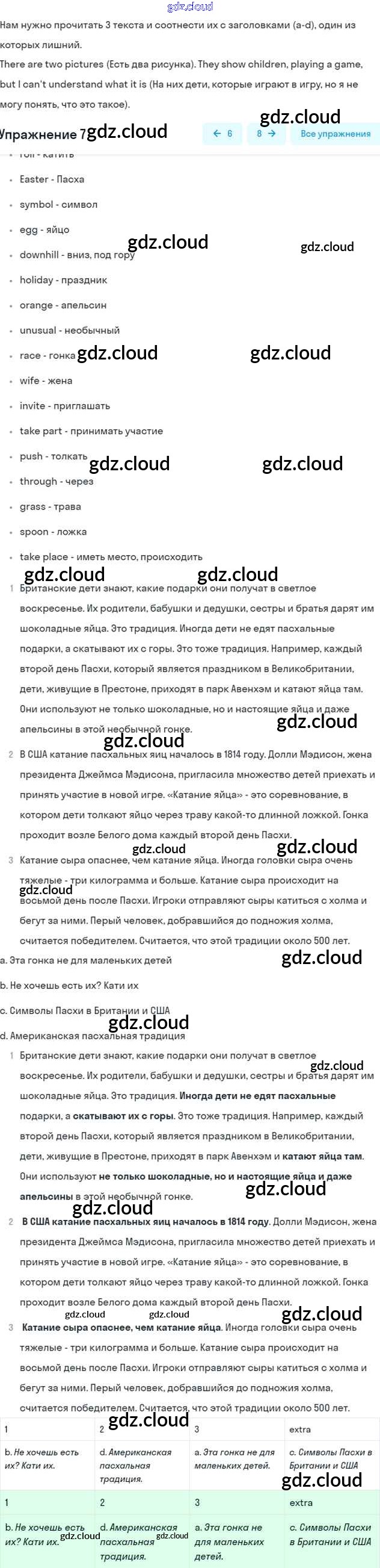 Ответ на задание 7 Рабочая тетрадь Английский язык  за 6 (шестой) класс Афанасьева, Михеева, Баранова Rainbow  2017