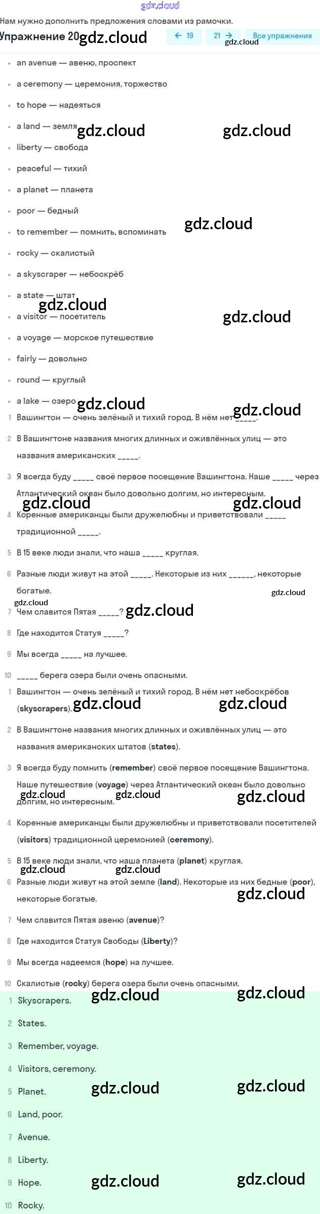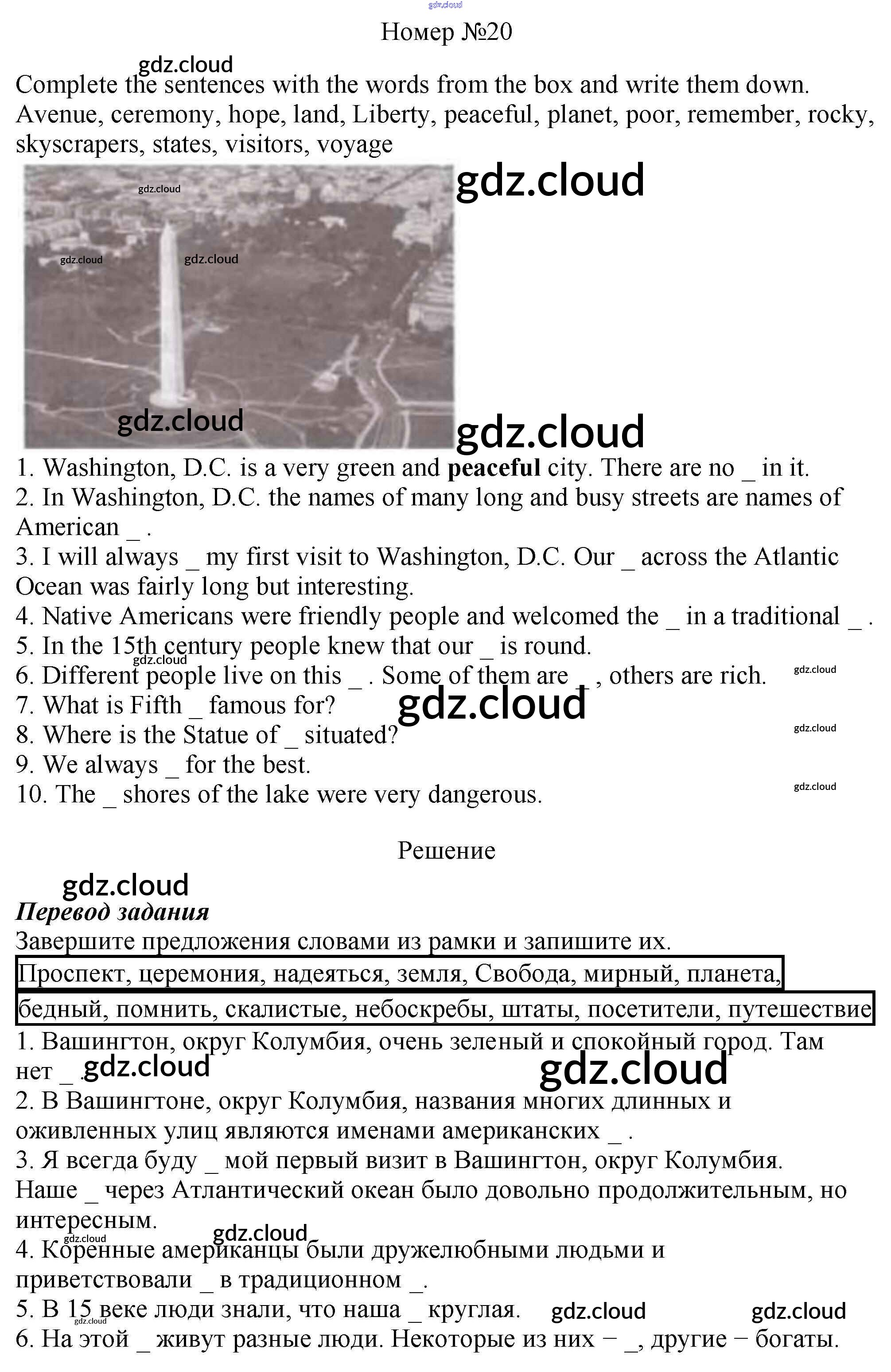 Ответ на задание 20 Рабочая тетрадь Английский язык  за 6 (шестой) класс Афанасьева, Михеева, Баранова Rainbow  2017