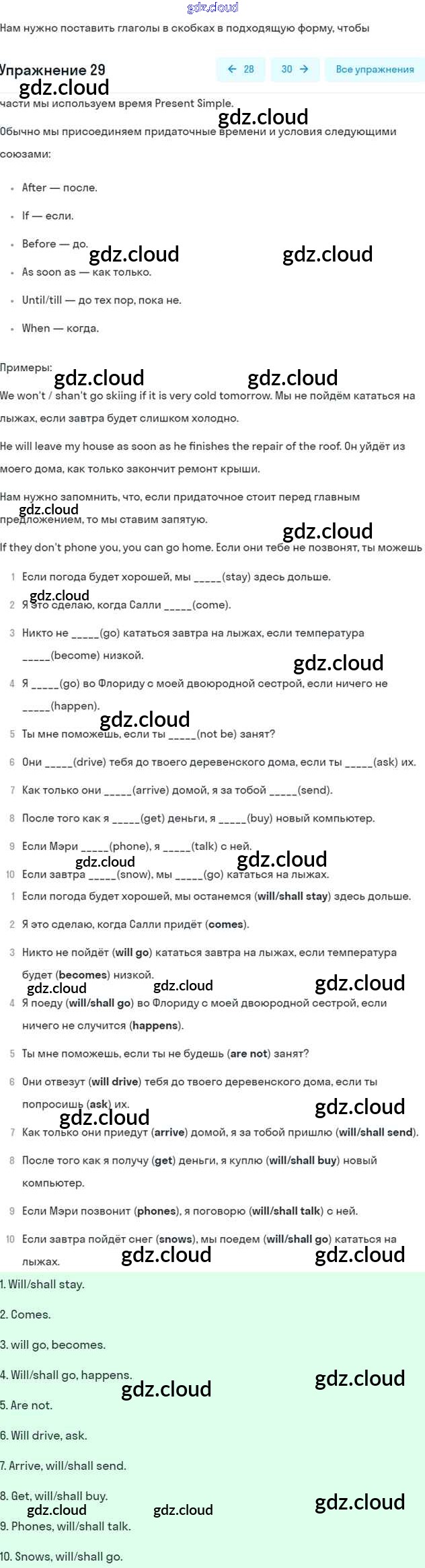 Ответ на задание 29 Рабочая тетрадь Английский язык  за 6 (шестой) класс Афанасьева, Михеева, Баранова Rainbow  2017