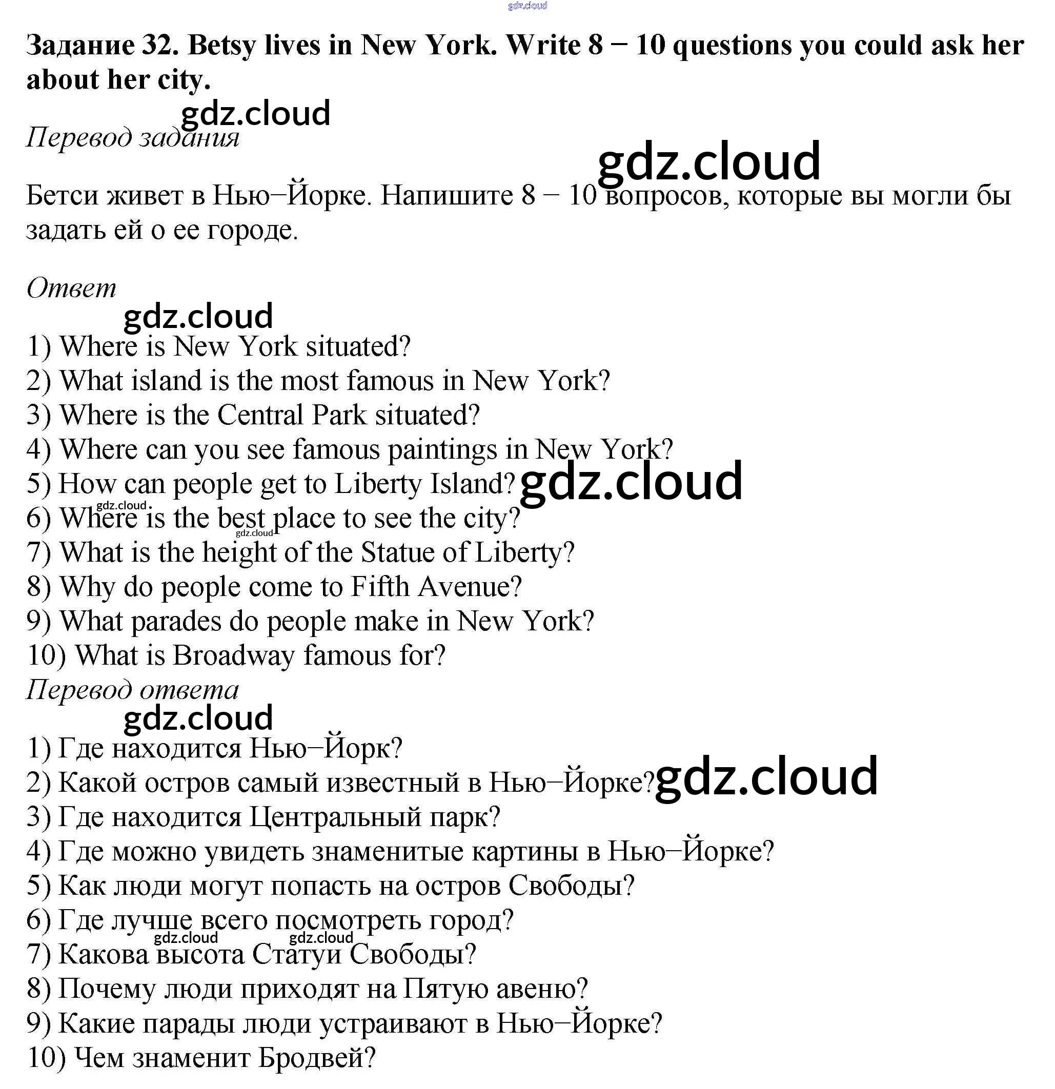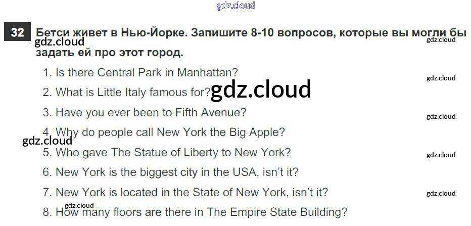 Ответ на задание 32 Рабочая тетрадь Английский язык  за 6 (шестой) класс Афанасьева, Михеева, Баранова Rainbow  2017