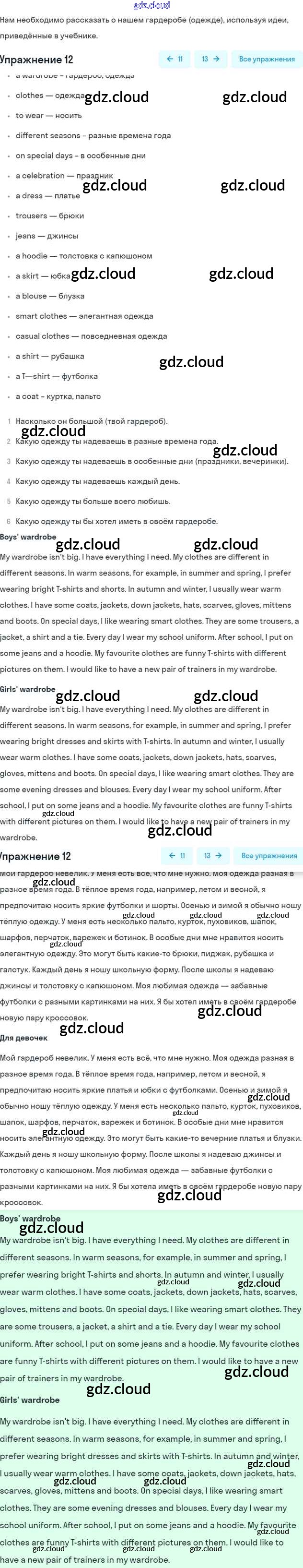 Ответ на задание 12 Рабочая тетрадь Английский язык за 6 (шестой) класс Афанасьева, Михеева, Баранова Rainbow 2017