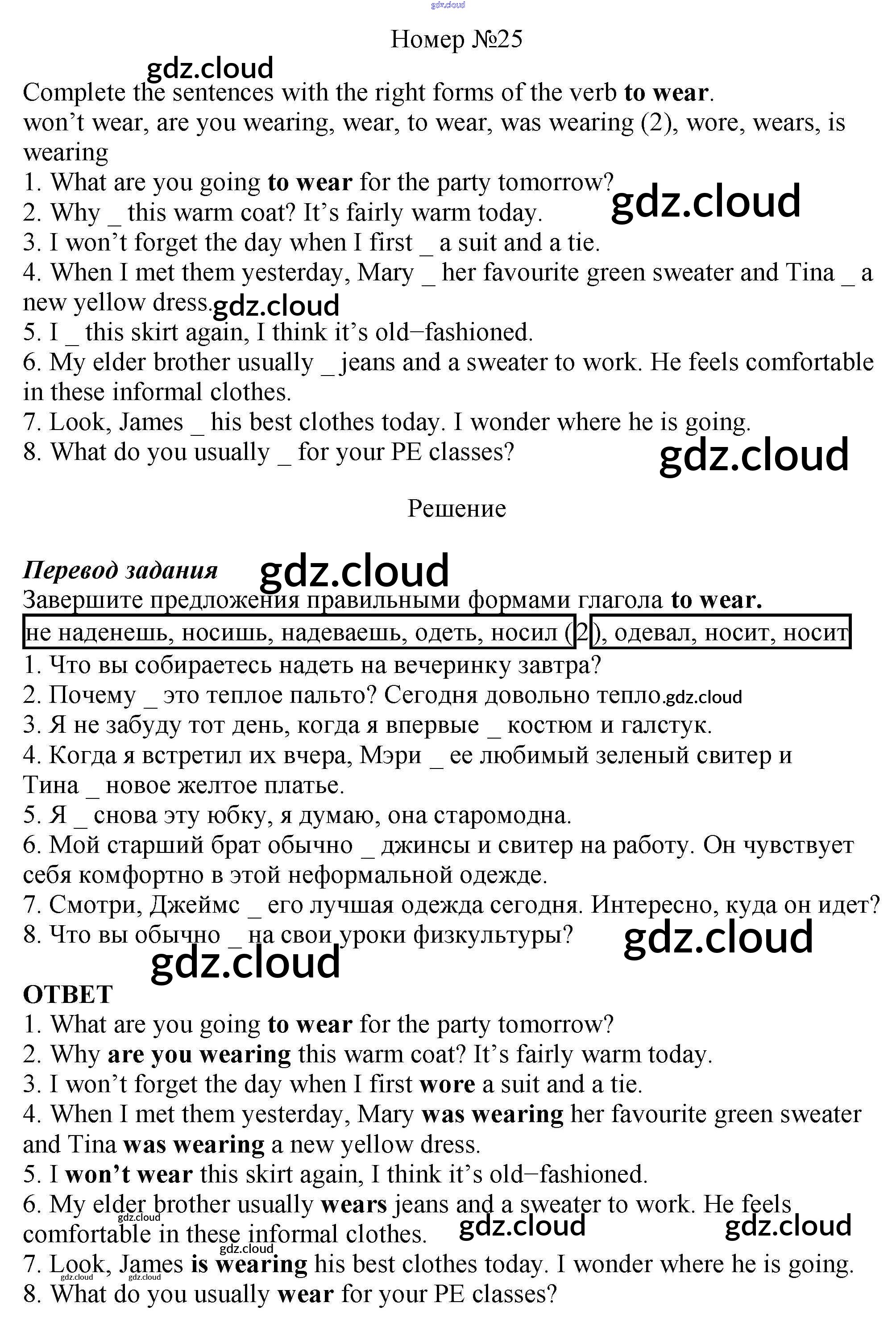Ответ на задание 25 Рабочая тетрадь Английский язык  за 6 (шестой) класс Афанасьева, Михеева, Баранова Rainbow  2017