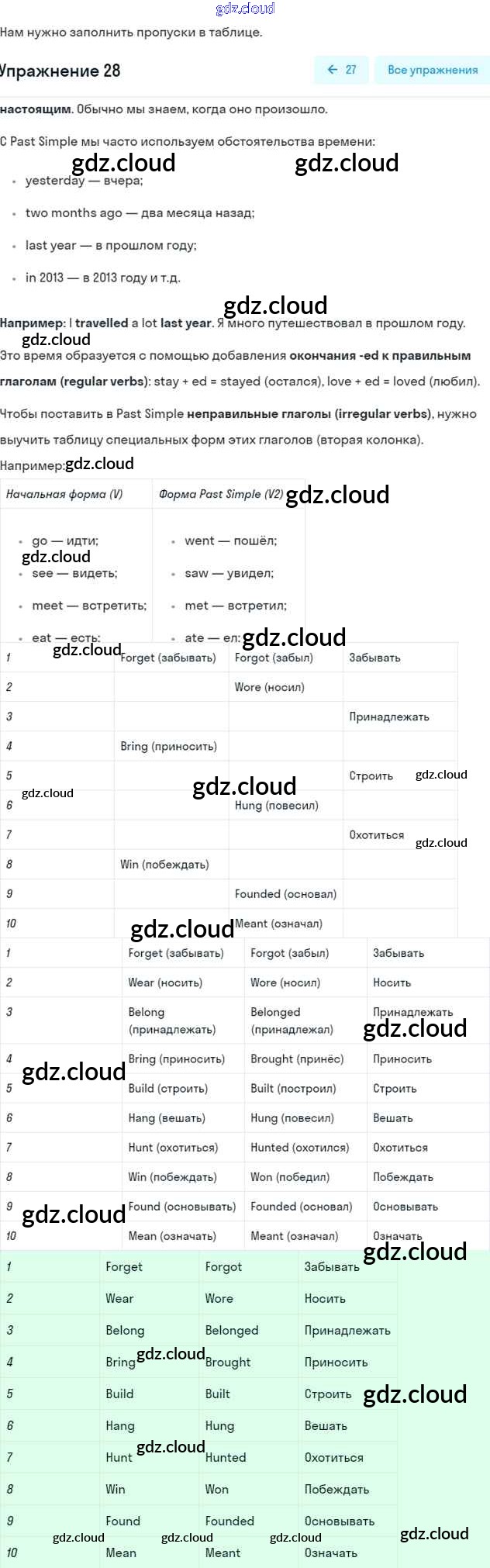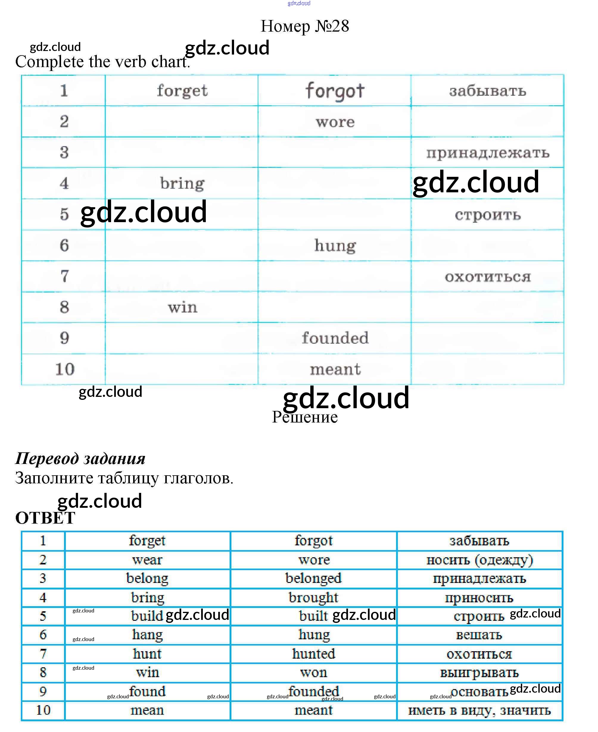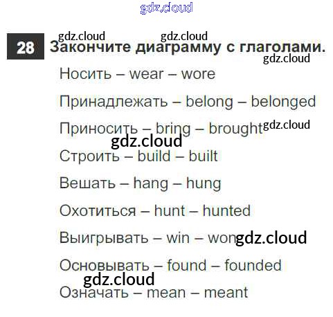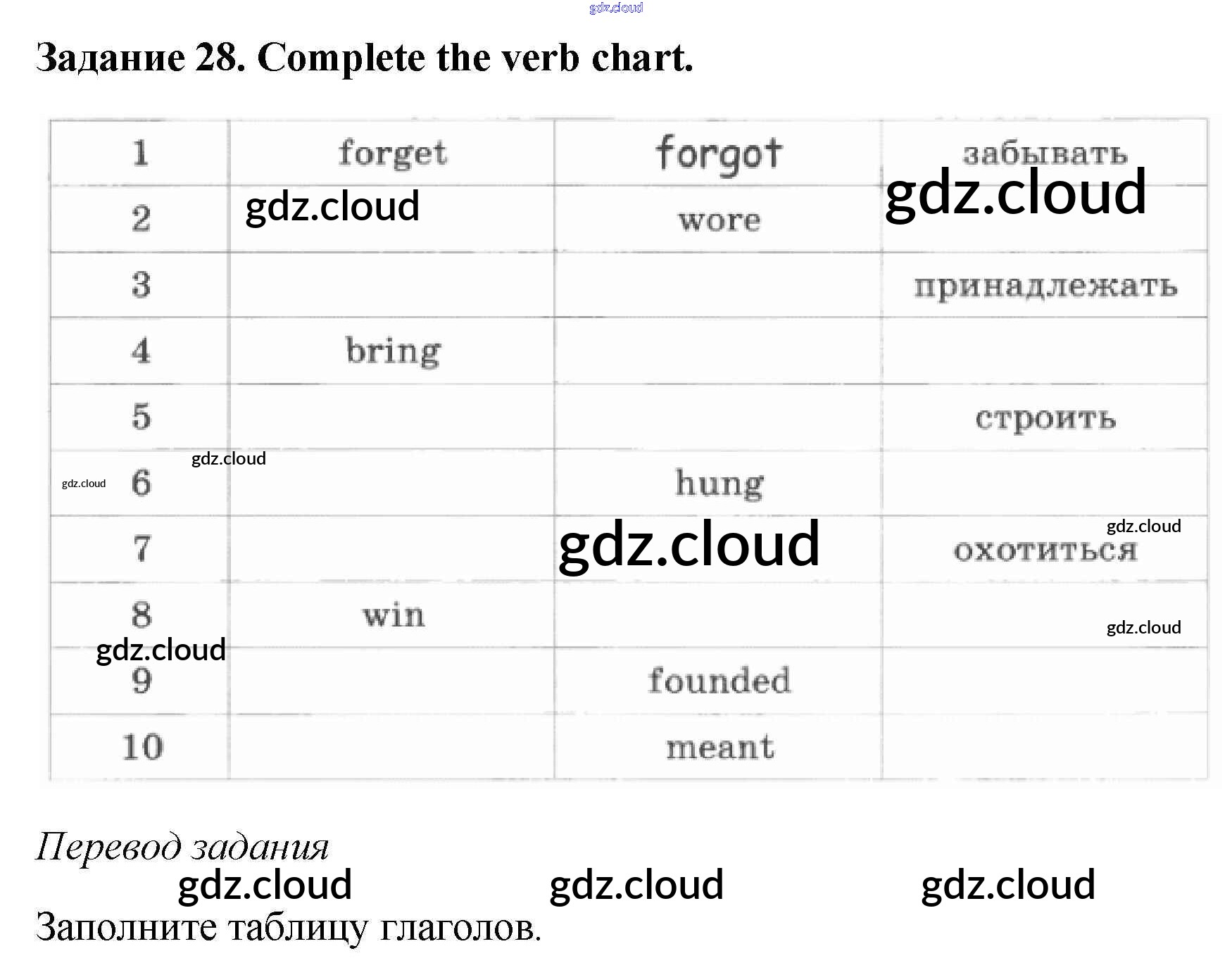 Ответ на задание 28 Рабочая тетрадь Английский язык  за 6 (шестой) класс Афанасьева, Михеева, Баранова Rainbow  2017