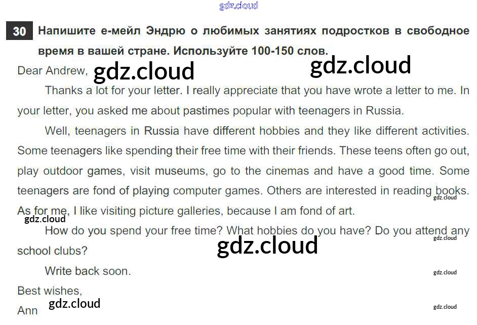 Ответ на задание 30 Рабочая тетрадь Английский язык  за 6 (шестой) класс Афанасьева, Михеева, Баранова Rainbow  2017