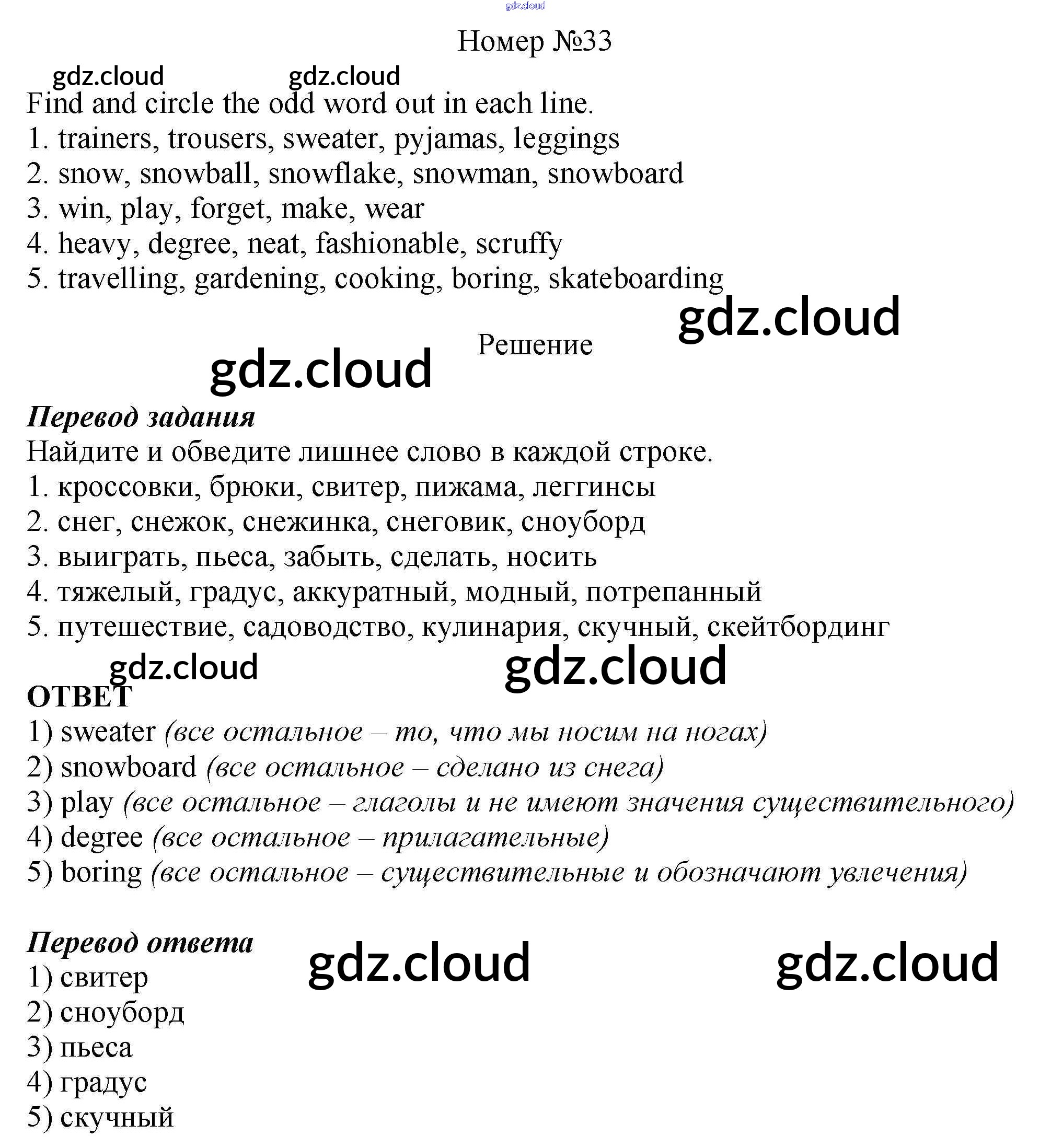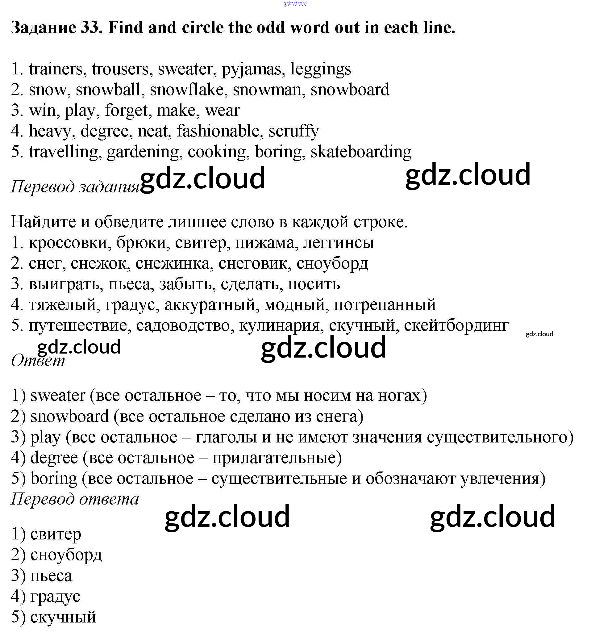 Ответ на задание 33 Рабочая тетрадь Английский язык  за 6 (шестой) класс Афанасьева, Михеева, Баранова Rainbow  2017