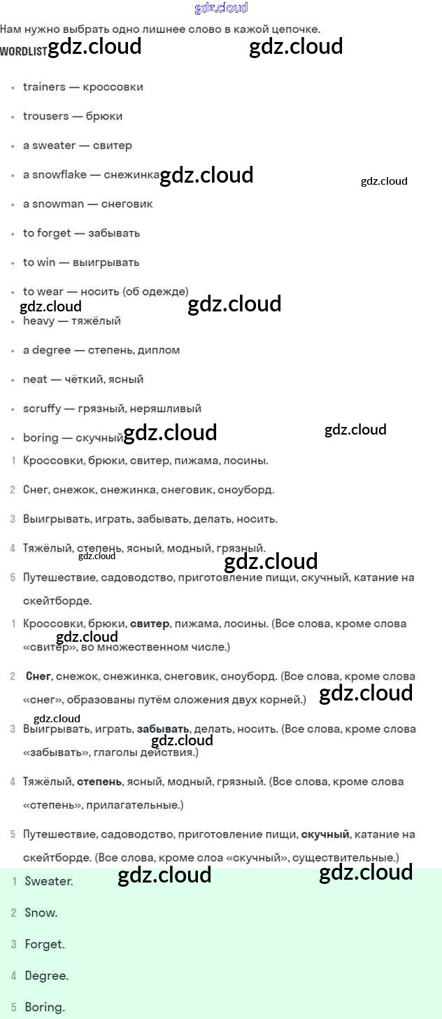 Ответы. Unit Five  по Английскому языку 6 класс Рабочая тетрадь Афанасьева Rainbow   Дрофа