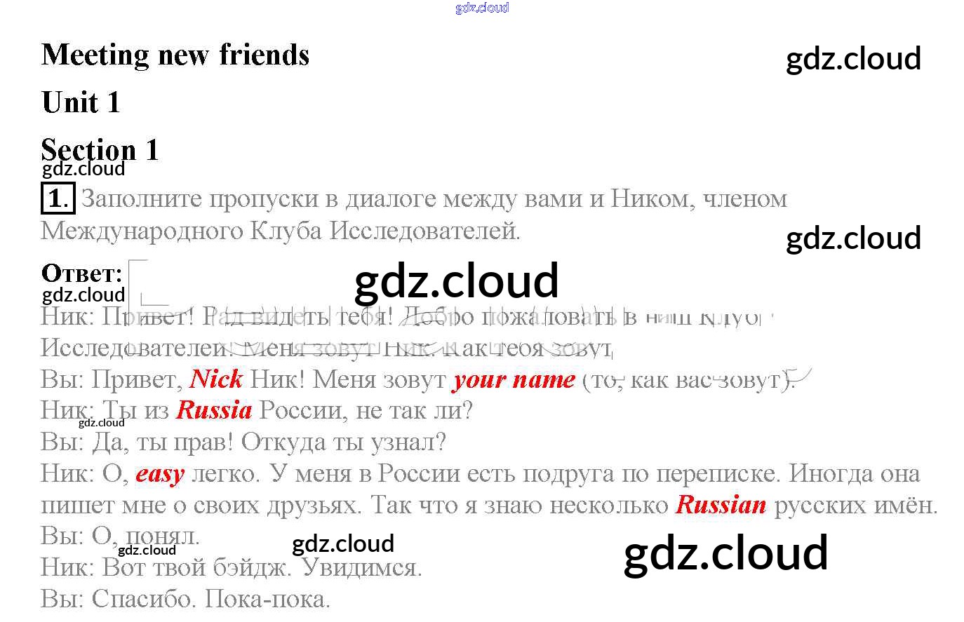 Ответ на задание 1 Рабочая тетрадь Английский язык  за 6 (шестой) класс Биболетова, Денисенко, Трубанева Enjoy English  2019