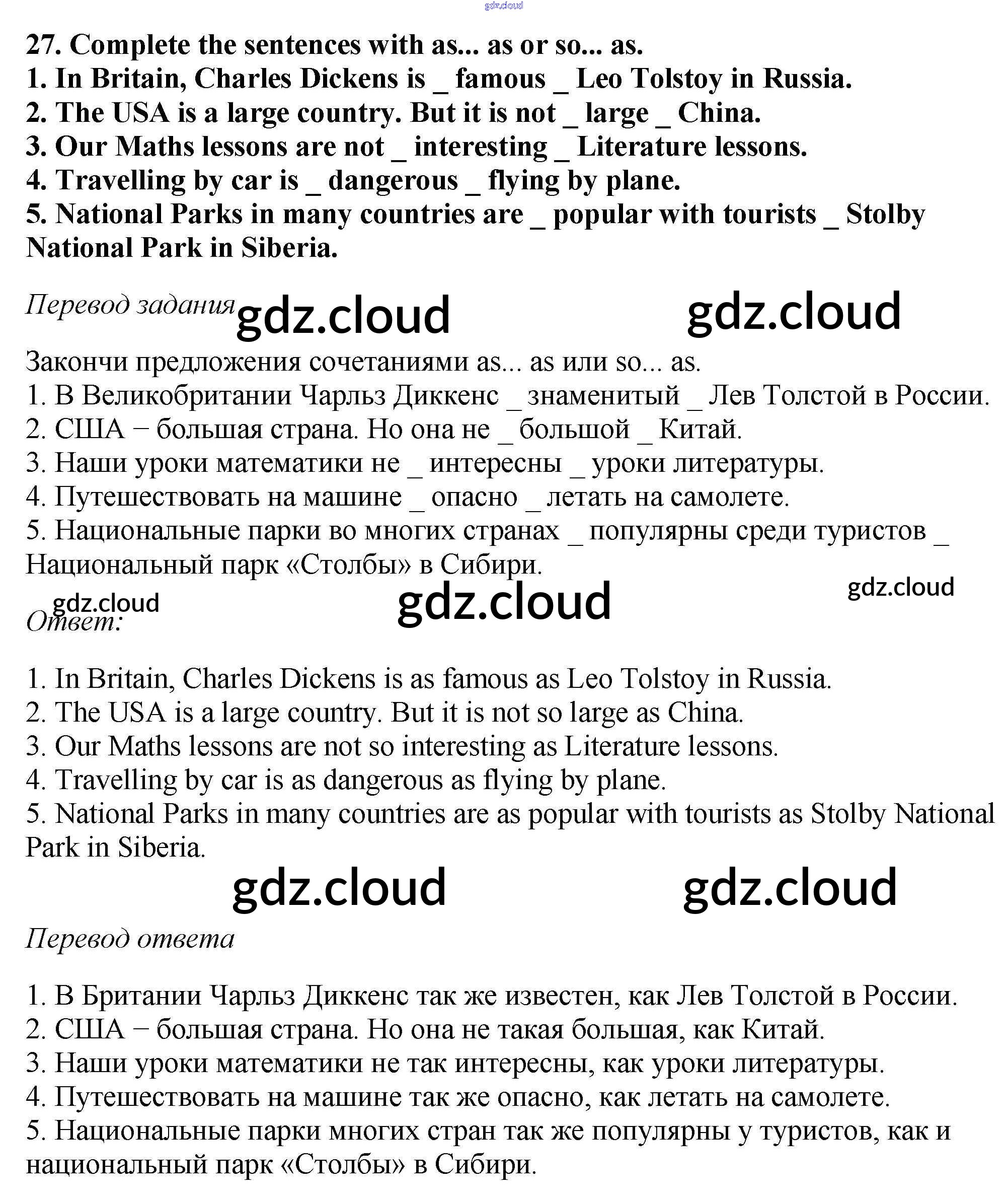 Ответ на задание 27 Рабочая тетрадь Английский язык  за 6 (шестой) класс Биболетова, Денисенко, Трубанева Enjoy English  2019