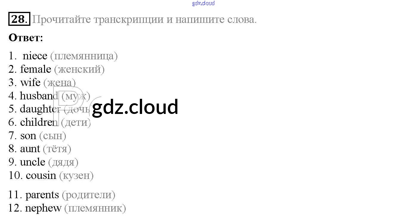 Ответ на задание 28 Рабочая тетрадь Английский язык  за 6 (шестой) класс Биболетова, Денисенко, Трубанева Enjoy English  2019