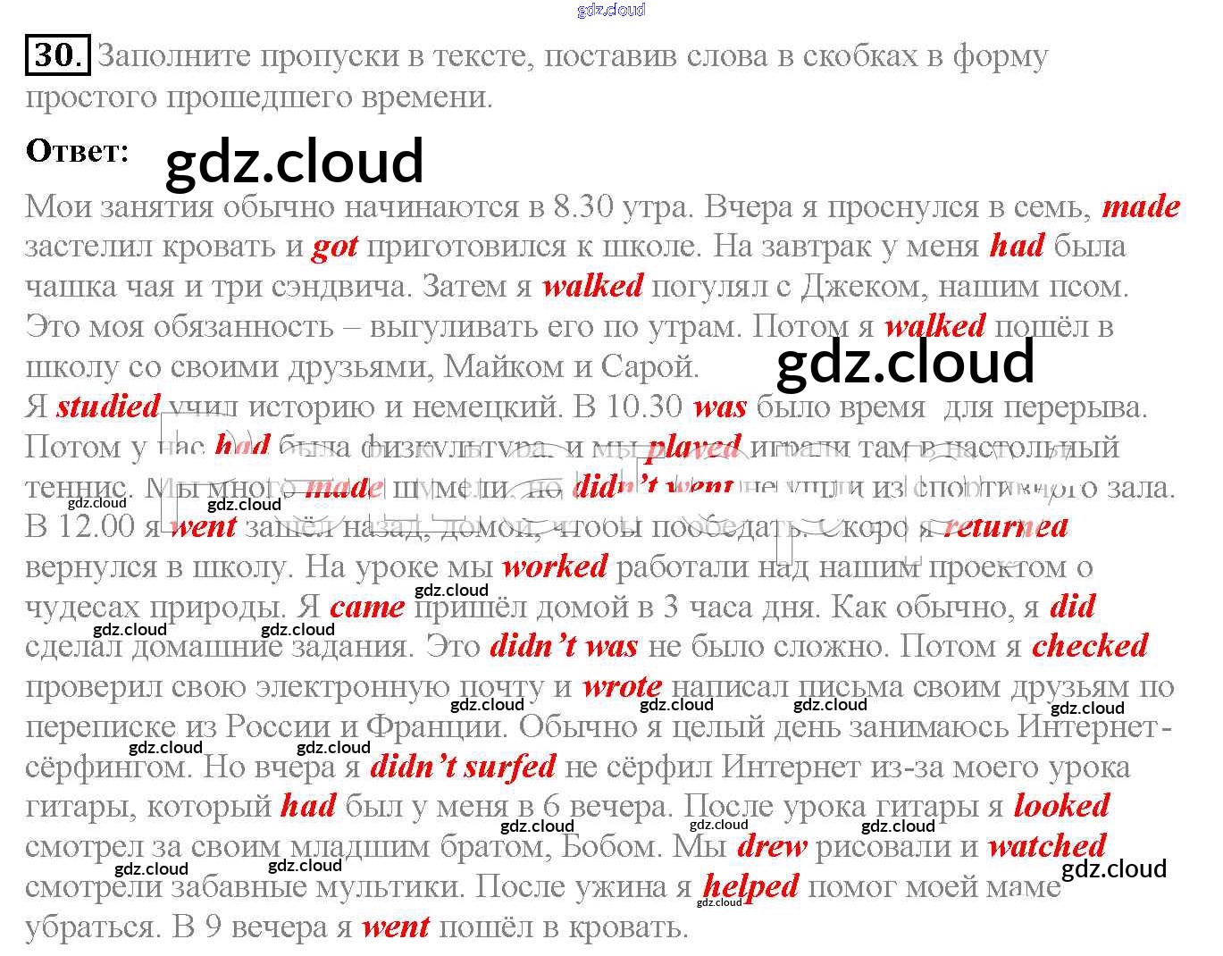 Ответ на задание 30 Рабочая тетрадь Английский язык  за 6 (шестой) класс Биболетова, Денисенко, Трубанева Enjoy English  2019