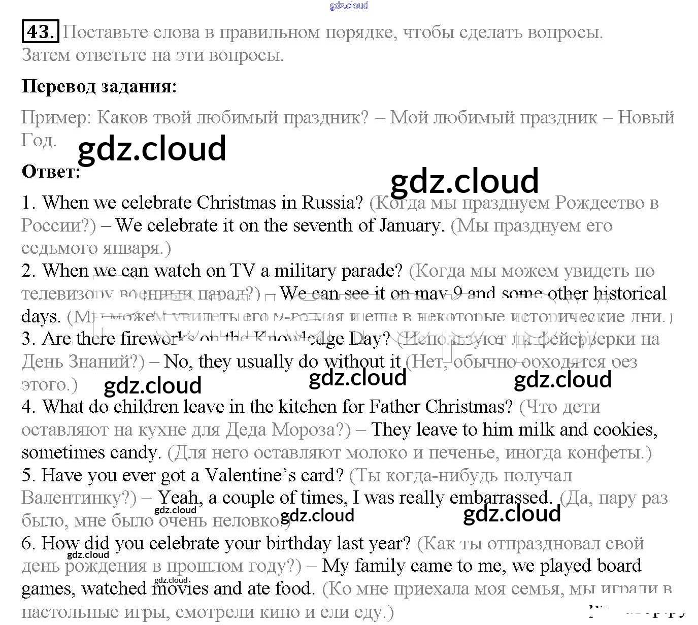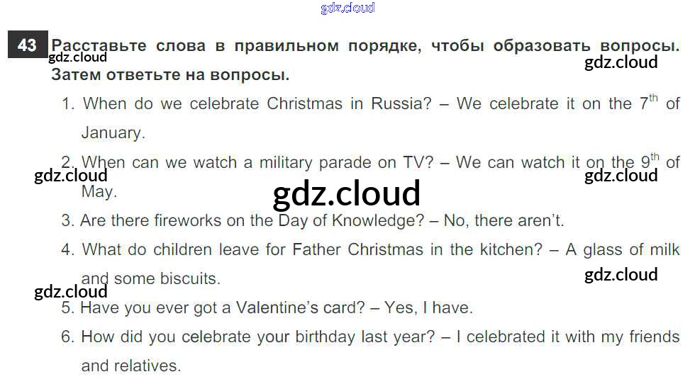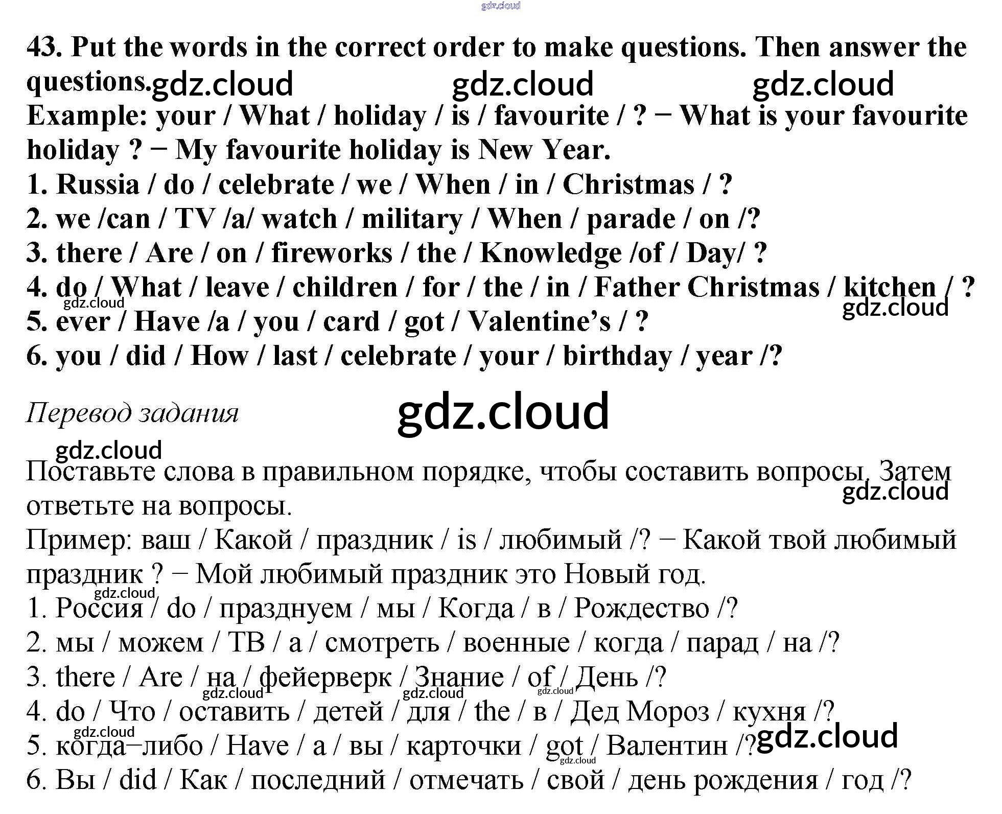 Ответ на задание 43 Рабочая тетрадь Английский язык  за 6 (шестой) класс Биболетова, Денисенко, Трубанева Enjoy English  2019