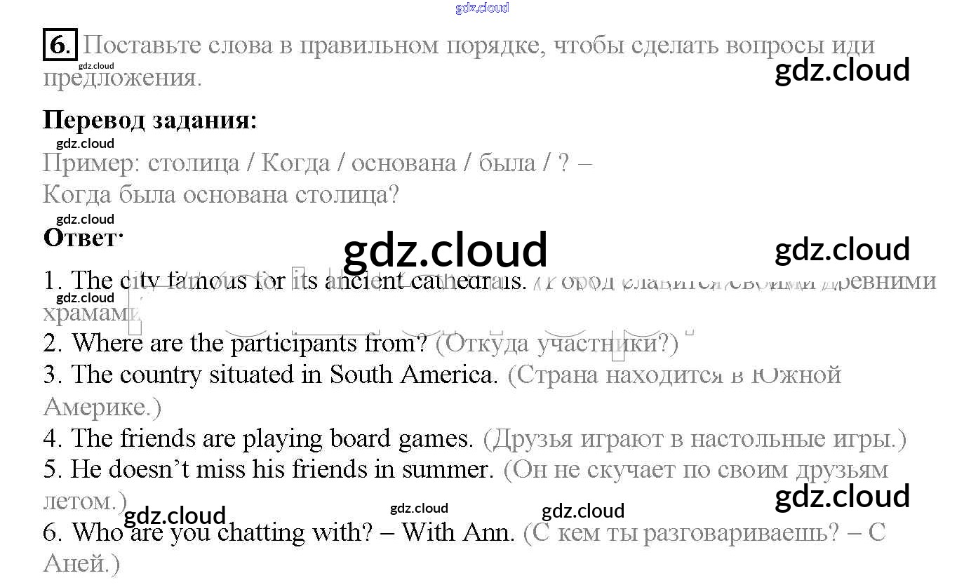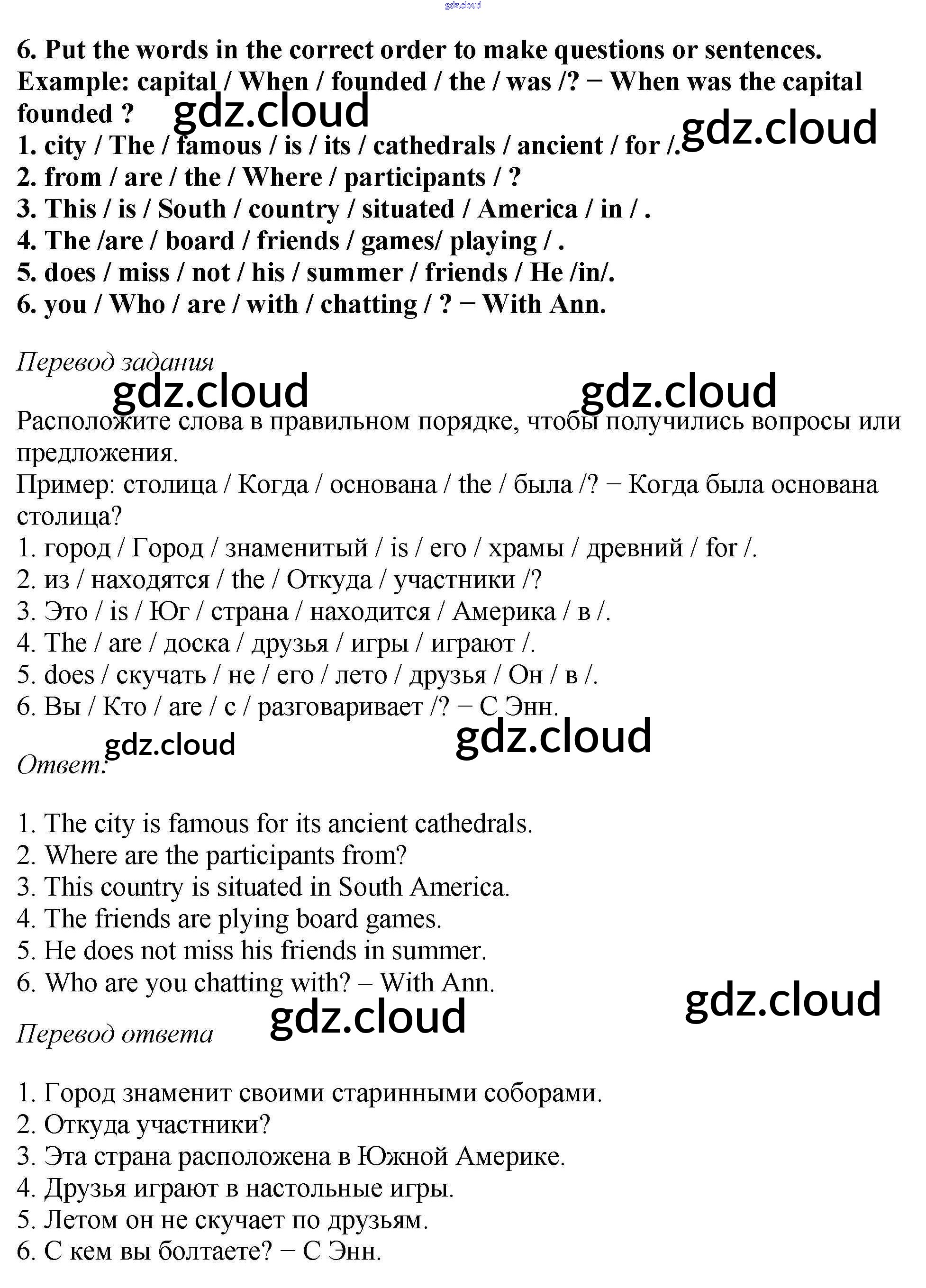 Ответ на задание 6 Рабочая тетрадь Английский язык  за 6 (шестой) класс Биболетова, Денисенко, Трубанева Enjoy English  2019