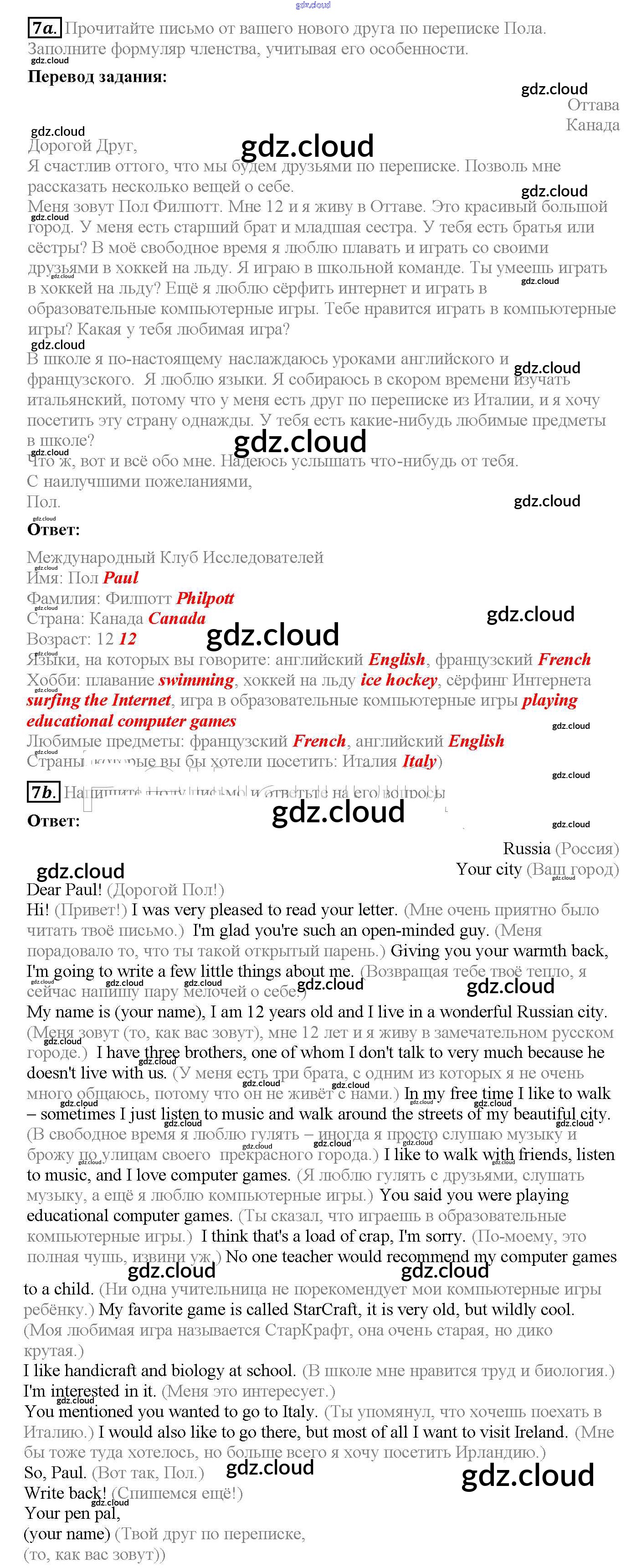 Ответ на задание 7 Рабочая тетрадь Английский язык  за 6 (шестой) класс Биболетова, Денисенко, Трубанева Enjoy English  2019