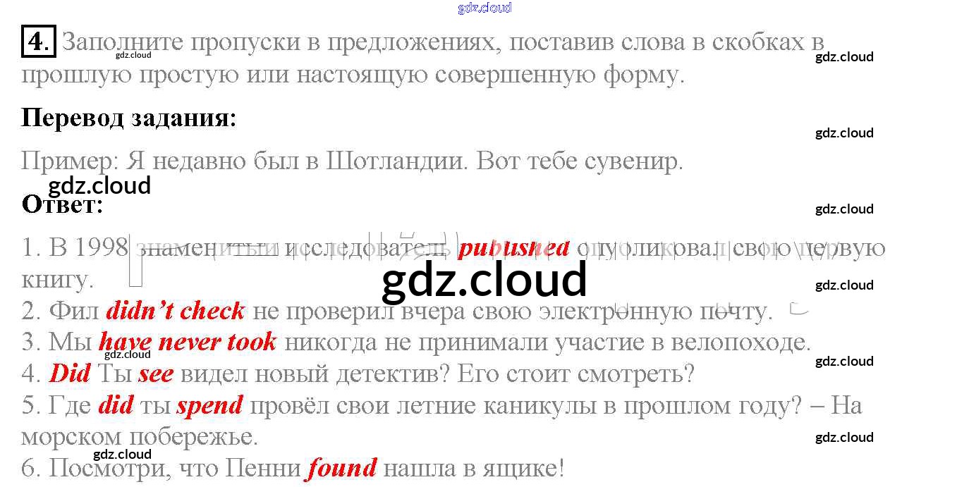 Ответ на задание 4 Рабочая тетрадь Английский язык  за 6 (шестой) класс Биболетова, Денисенко, Трубанева Enjoy English  2019