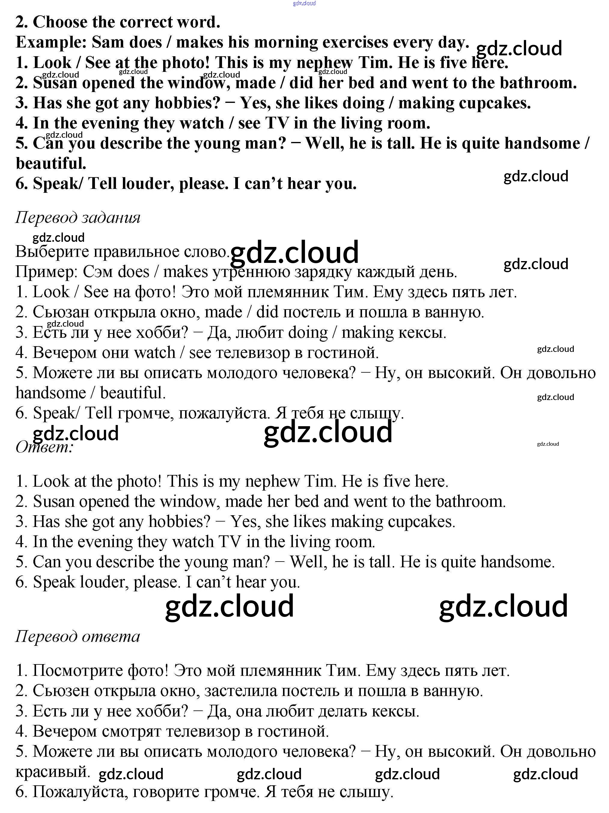 Ответ на задание 2 Рабочая тетрадь Английский язык  за 6 (шестой) класс Биболетова, Денисенко, Трубанева Enjoy English  2019