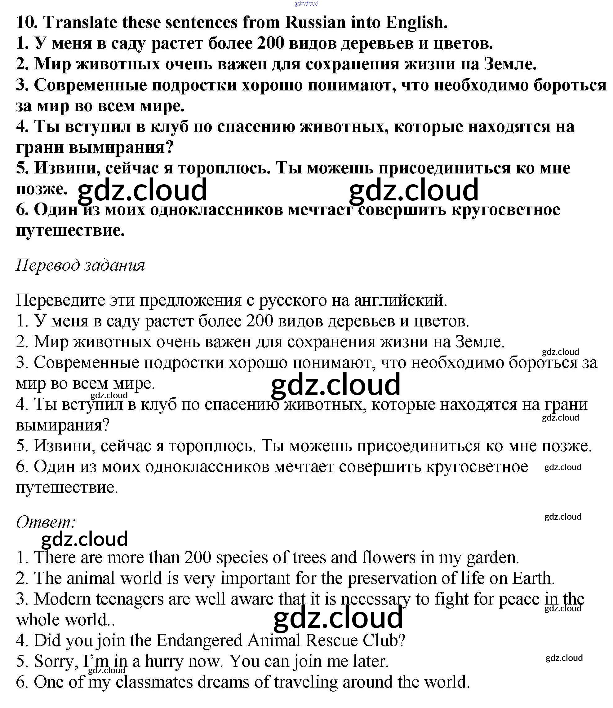 Ответ на задание 10 Рабочая тетрадь Английский язык  за 6 (шестой) класс Биболетова, Денисенко, Трубанева Enjoy English  2019