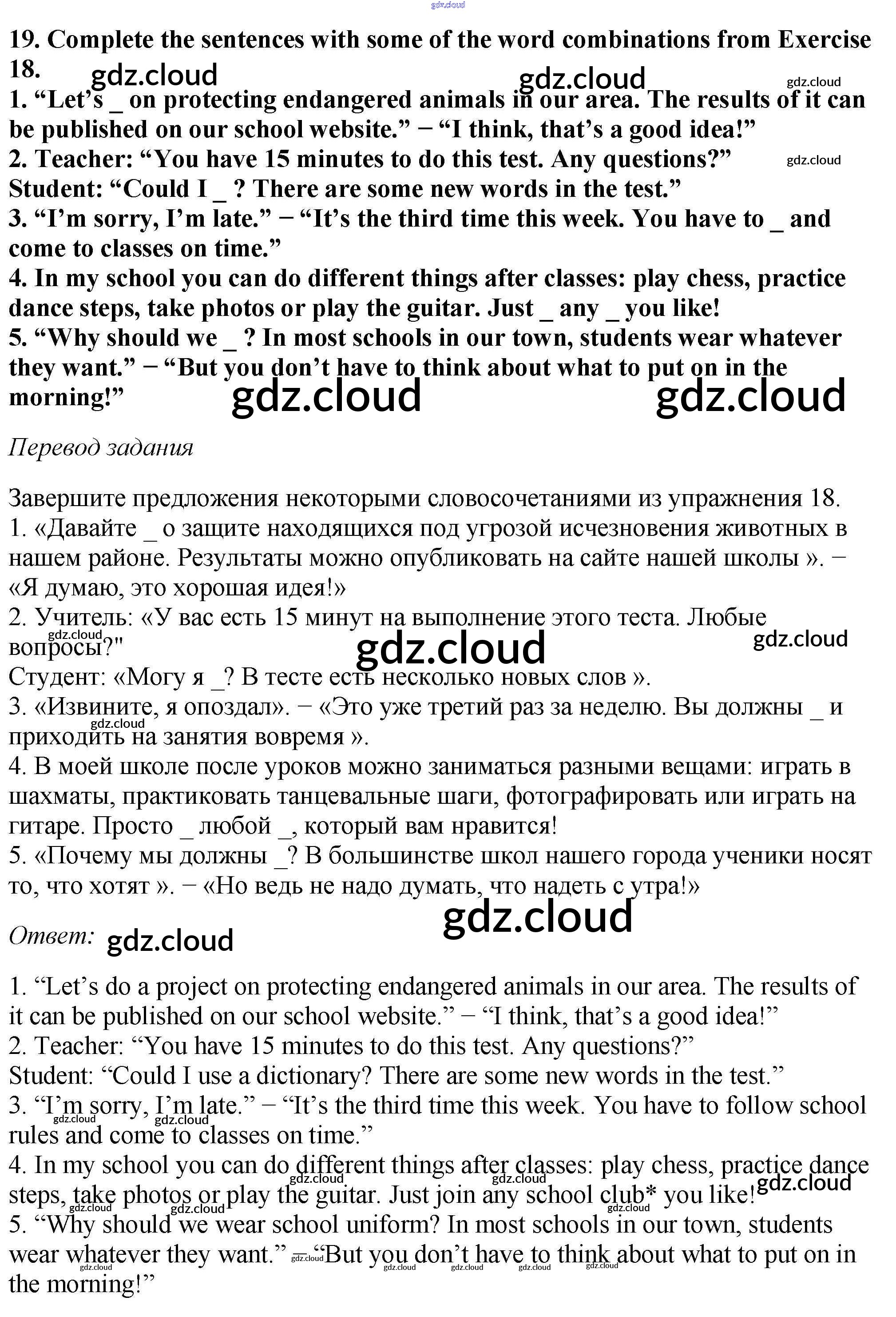 Ответ на задание 19 Рабочая тетрадь Английский язык  за 6 (шестой) класс Биболетова, Денисенко, Трубанева Enjoy English  2019