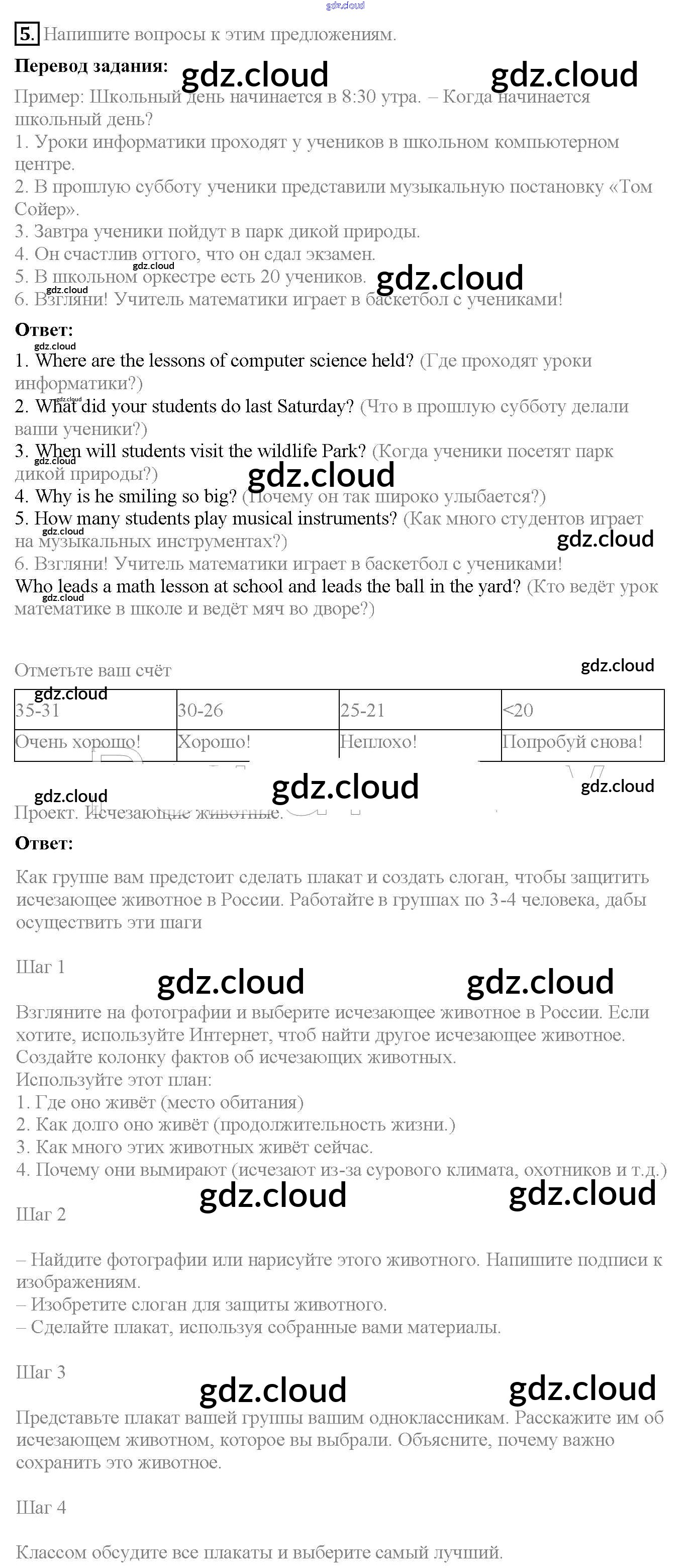 Ответ на задание 5 Рабочая тетрадь Английский язык  за 6 (шестой) класс Биболетова, Денисенко, Трубанева Enjoy English  2019