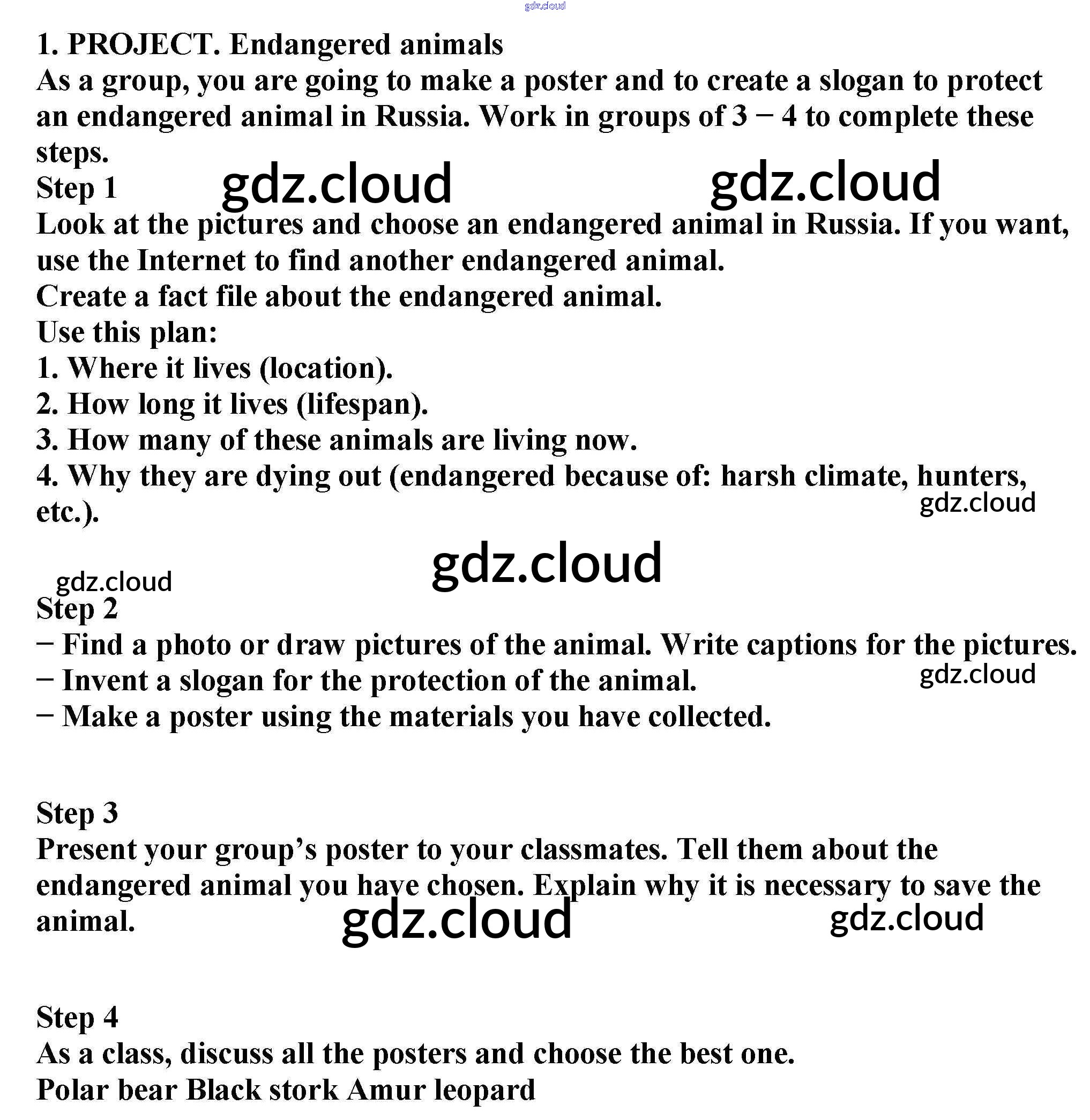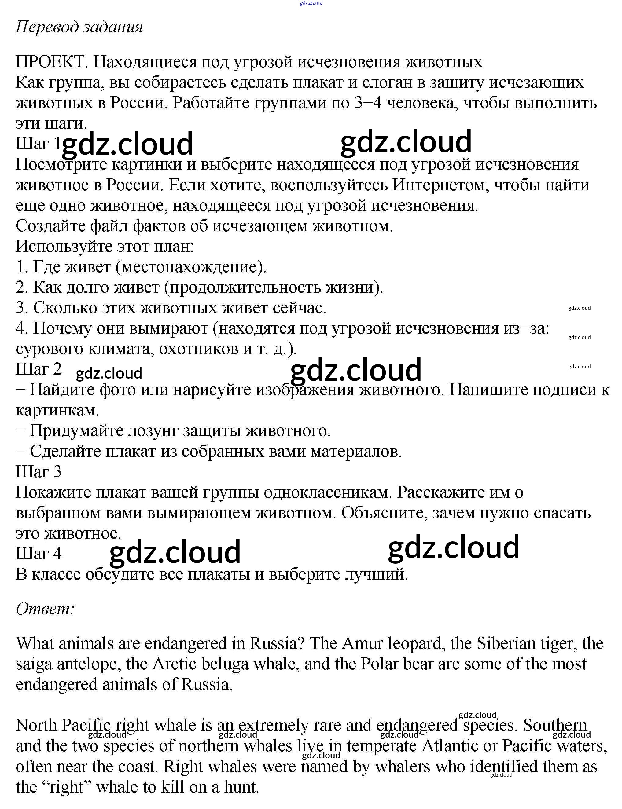 Ответ на задание Endangered animals Рабочая тетрадь Английский язык  за 6 (шестой) класс Биболетова, Денисенко, Трубанева Enjoy English  2019