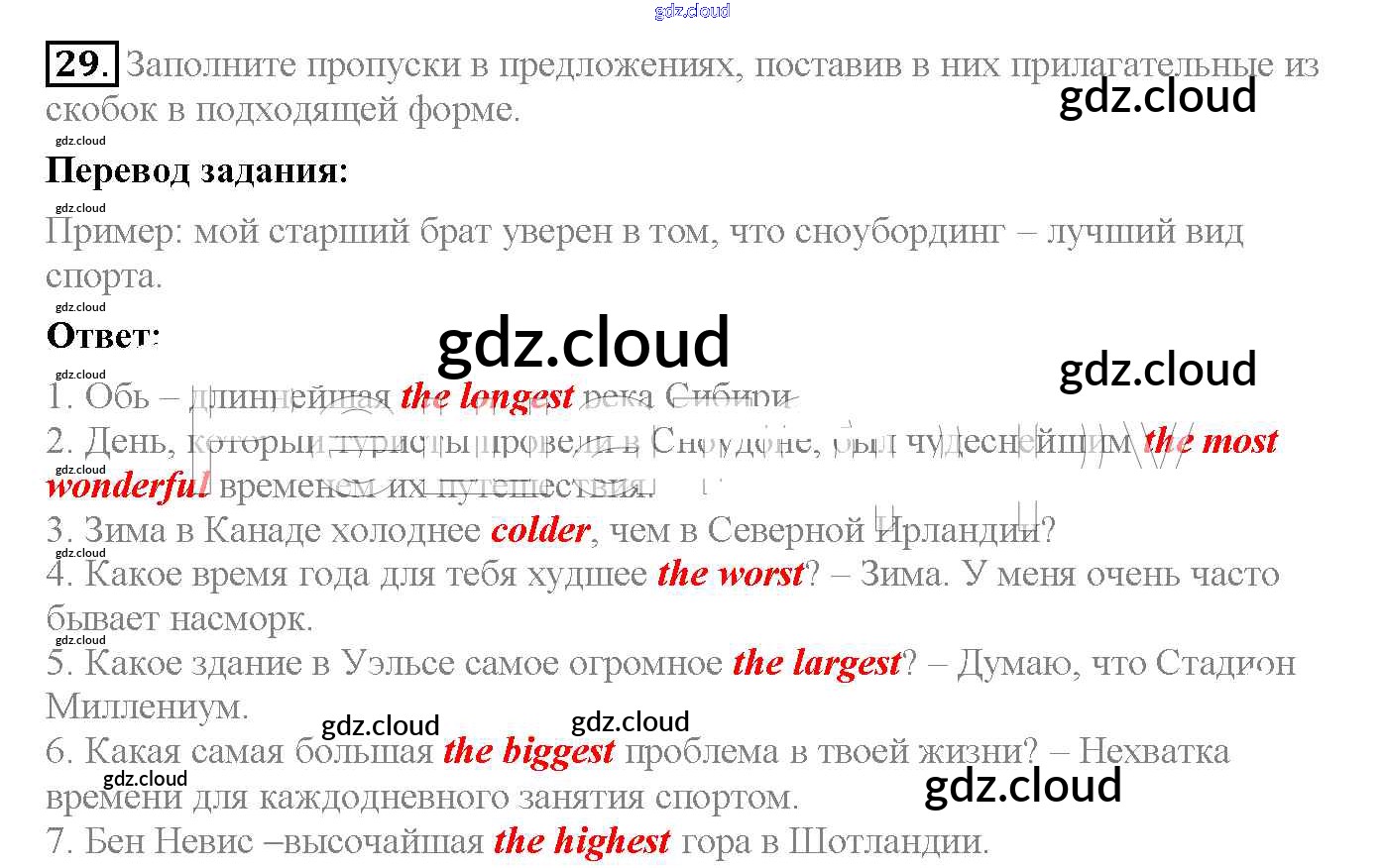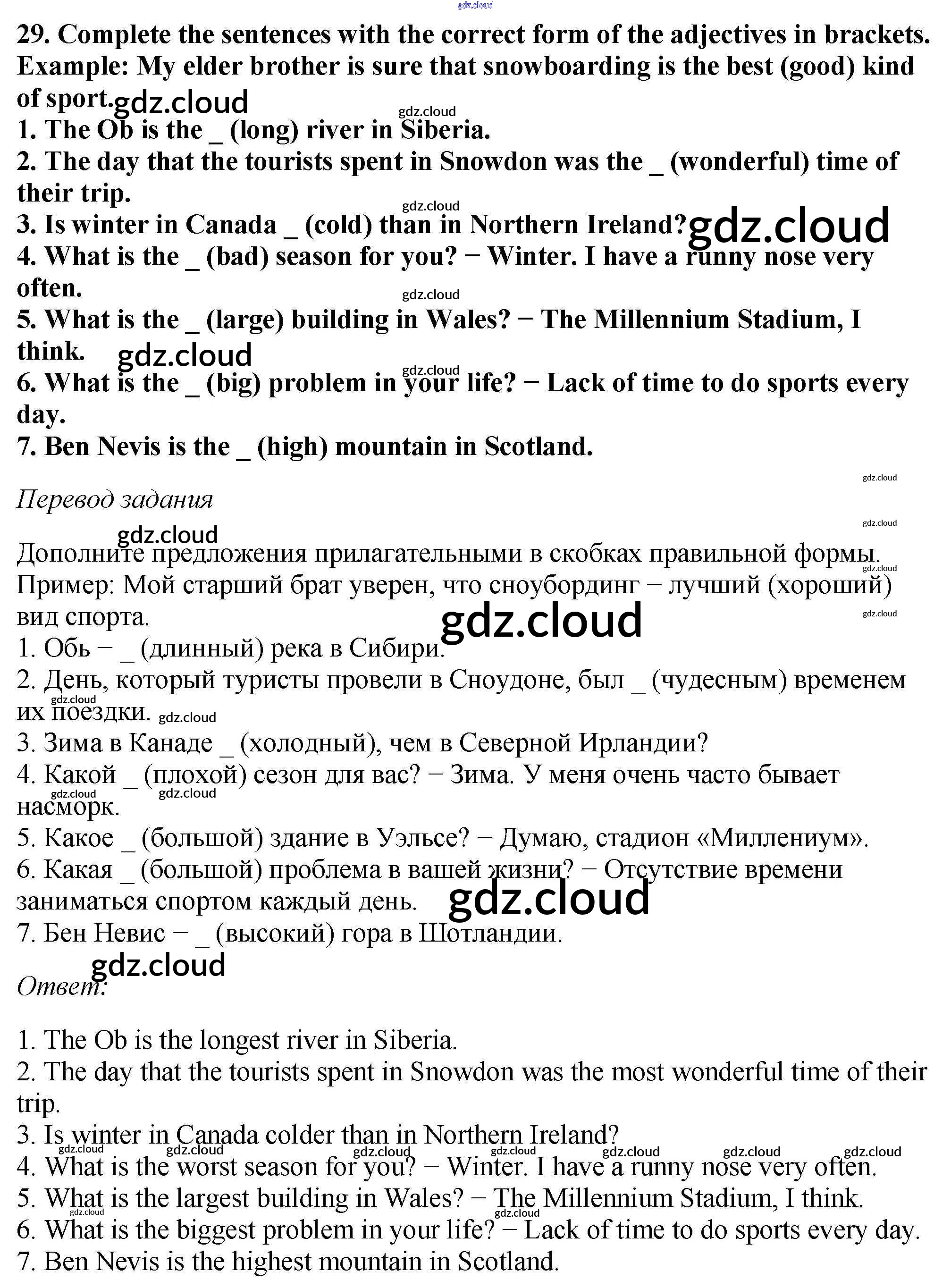 Ответ на задание 29 Рабочая тетрадь Английский язык за 6 (шестой) класс Биболетова, Денисенко, Трубанева Enjoy English 2019