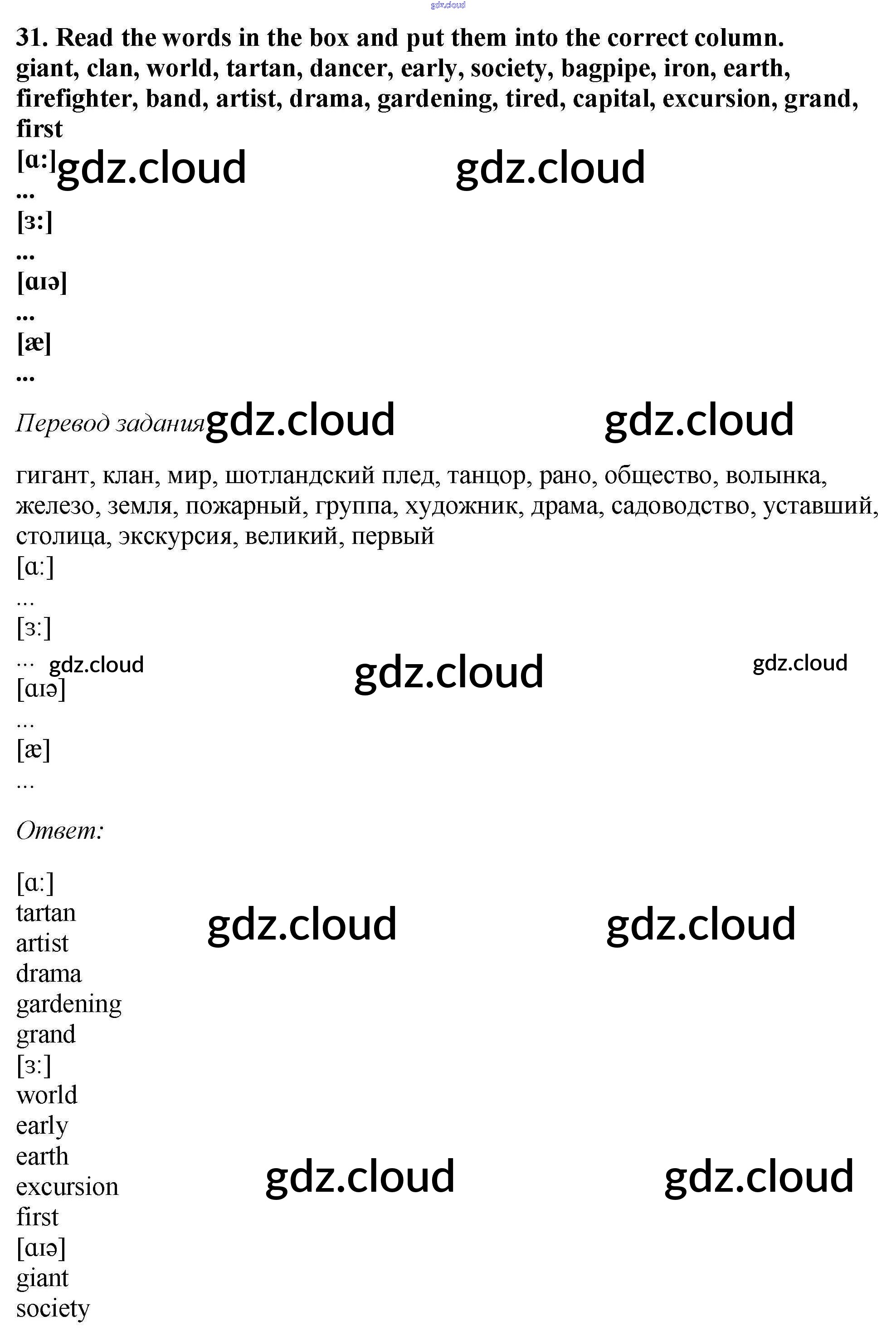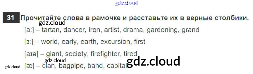 Ответ на задание 31 Рабочая тетрадь Английский язык за 6 (шестой) класс Биболетова, Денисенко, Трубанева Enjoy English 2019