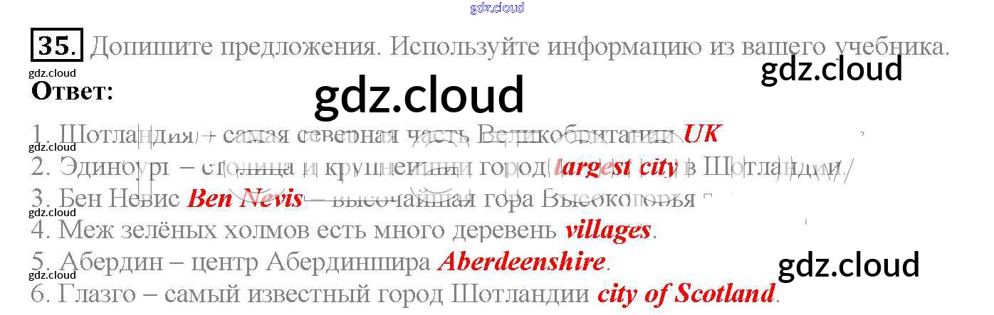 Ответ на задание 35 Рабочая тетрадь Английский язык  за 6 (шестой) класс Биболетова, Денисенко, Трубанева Enjoy English  2019