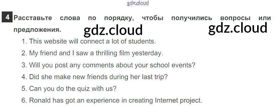 Ответ на задание 4 Рабочая тетрадь Английский язык  за 6 (шестой) класс Биболетова, Денисенко, Трубанева Enjoy English  2019