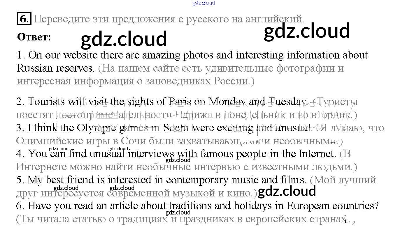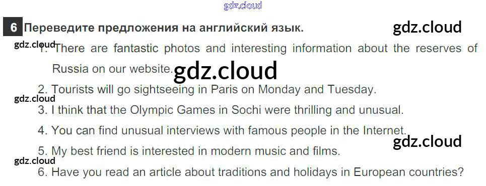 Ответ на задание 6 Рабочая тетрадь Английский язык  за 6 (шестой) класс Биболетова, Денисенко, Трубанева Enjoy English  2019