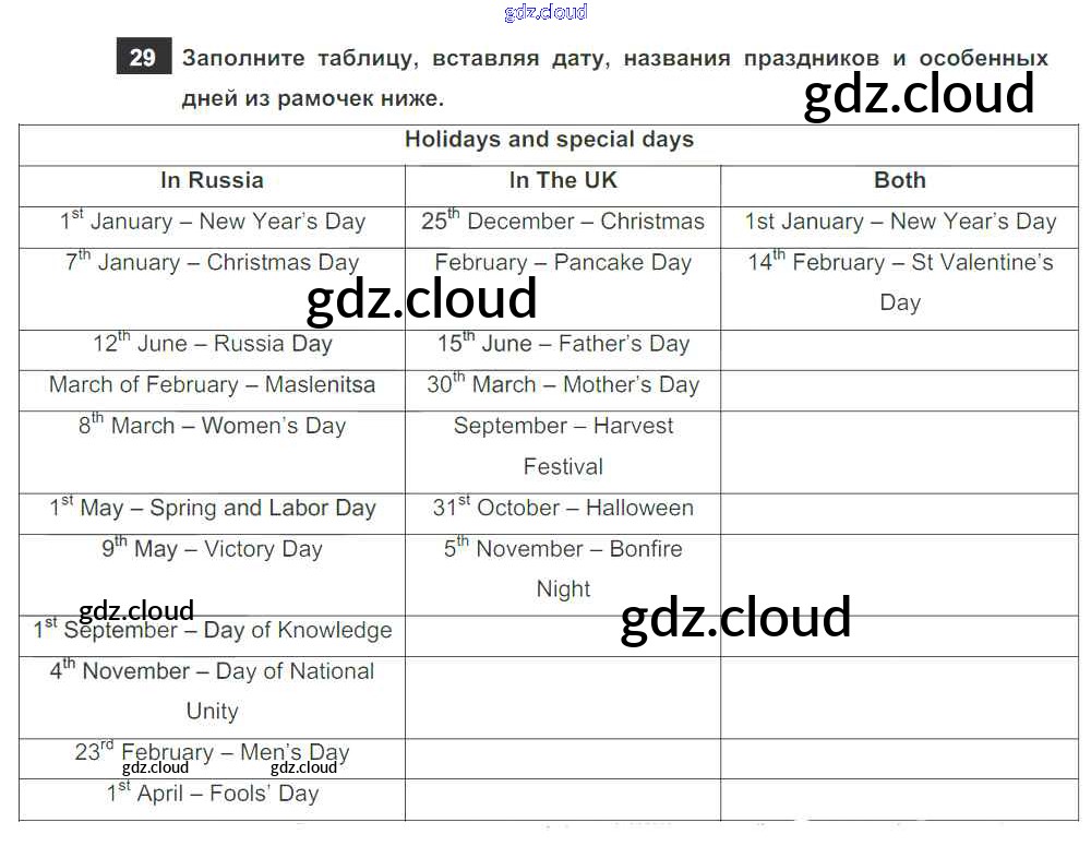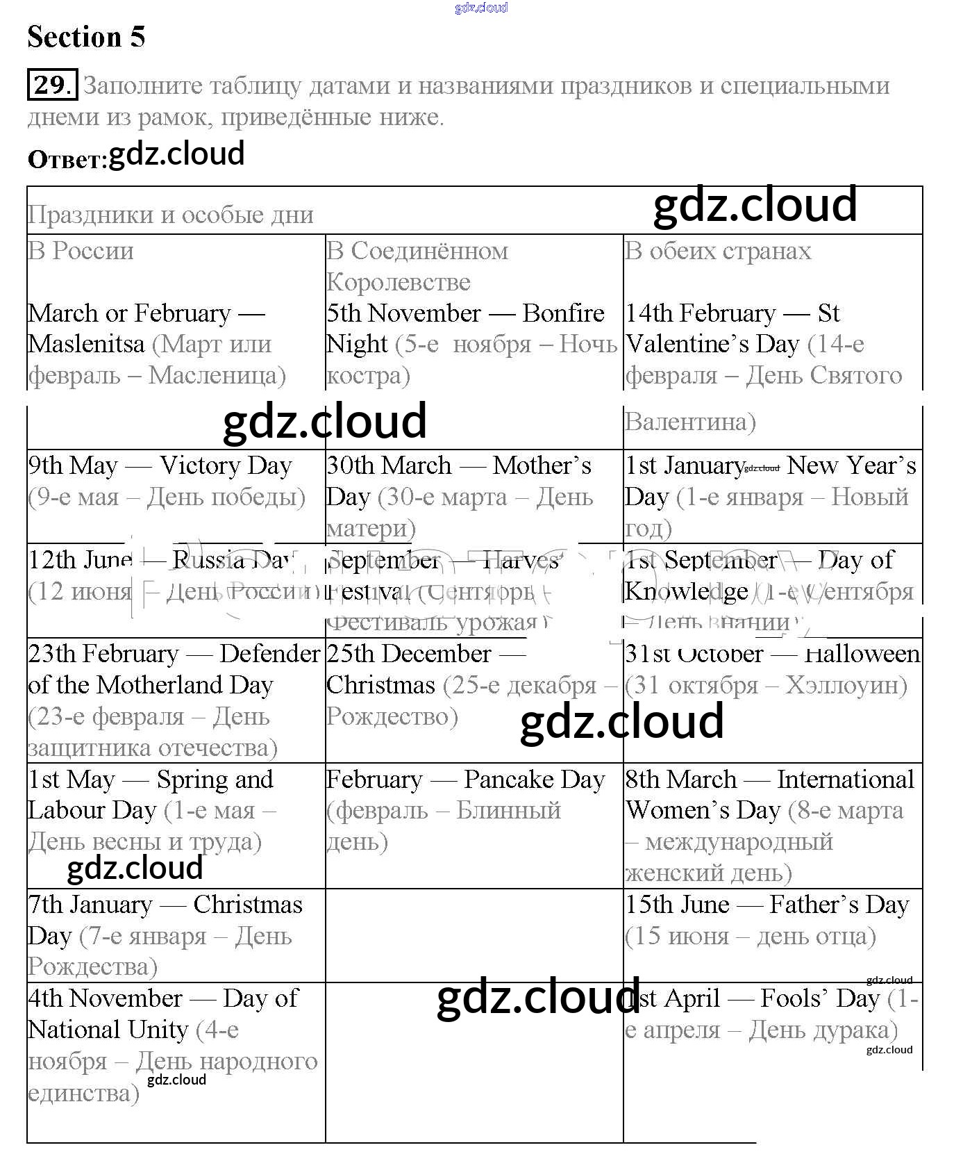Ответ на задание 29 Рабочая тетрадь Английский язык  за 6 (шестой) класс Биболетова, Денисенко, Трубанева Enjoy English  2019