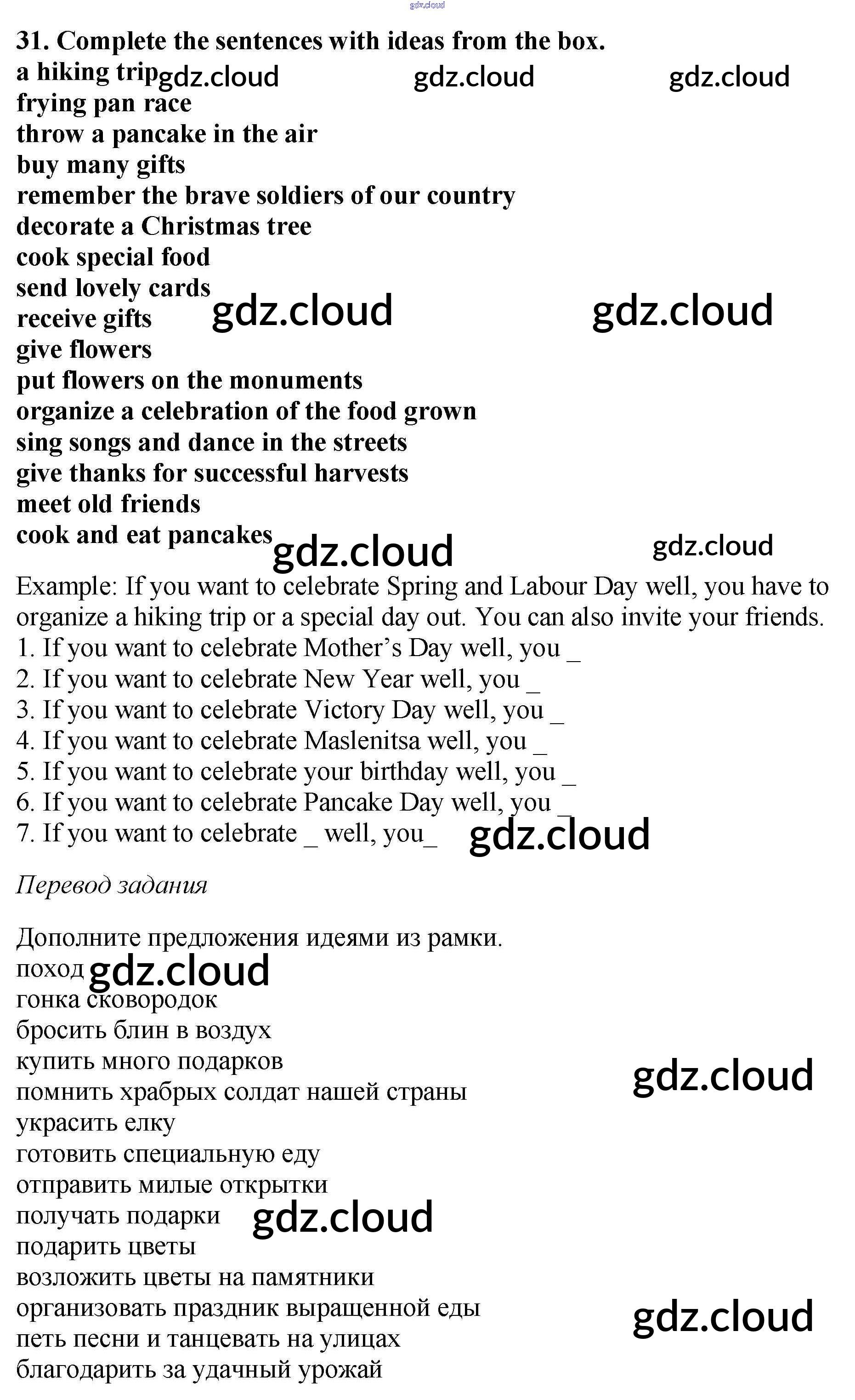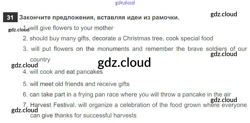 Ответ на задание 31 Рабочая тетрадь Английский язык  за 6 (шестой) класс Биболетова, Денисенко, Трубанева Enjoy English  2019