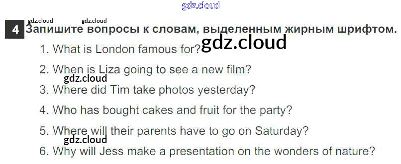 Ответ на задание 4 Рабочая тетрадь Английский язык  за 6 (шестой) класс Биболетова, Денисенко, Трубанева Enjoy English  2019