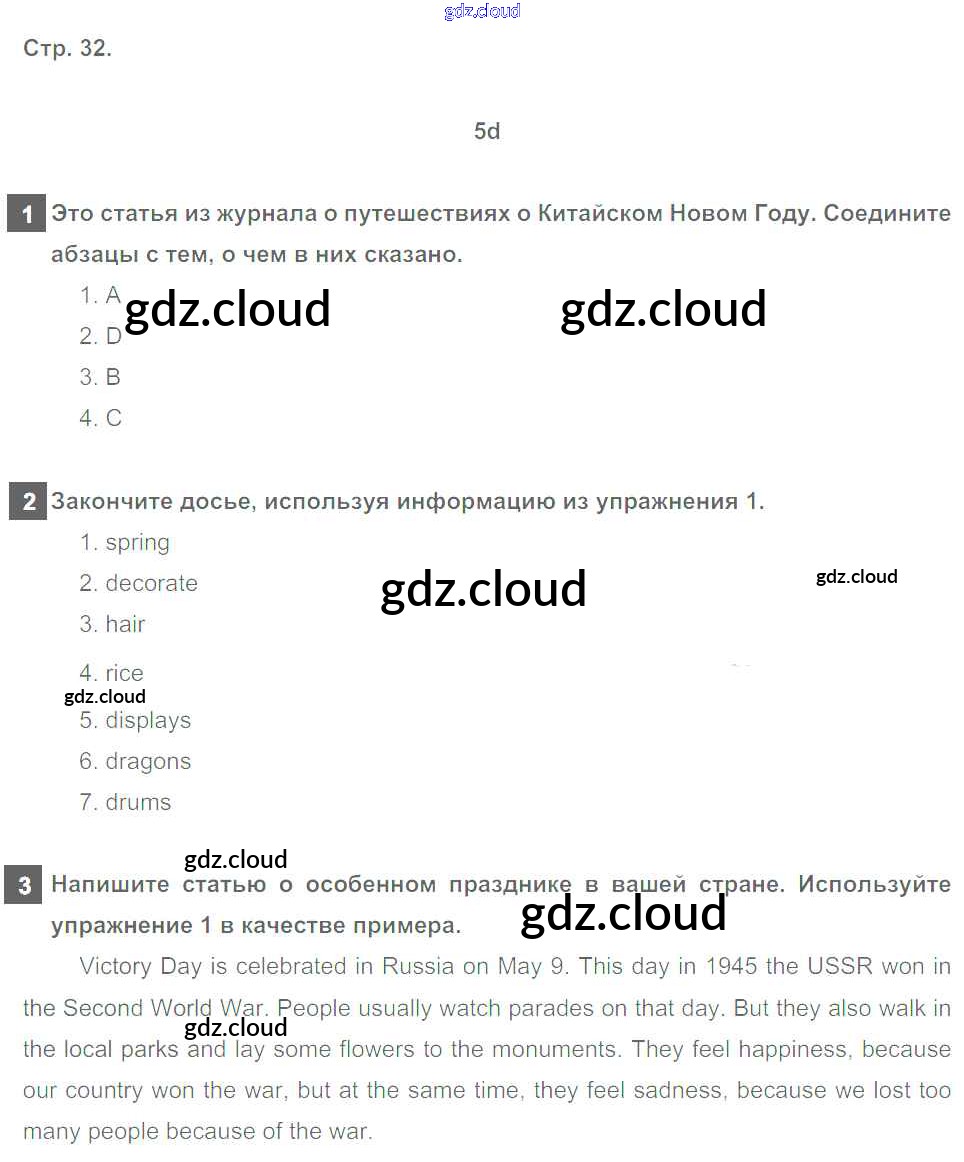 Ответ на задание 32 Рабочая тетрадь Английский язык  за 6 (шестой) класс Ваулина, Дули, Подоляко, Эванс Spotlight  2016