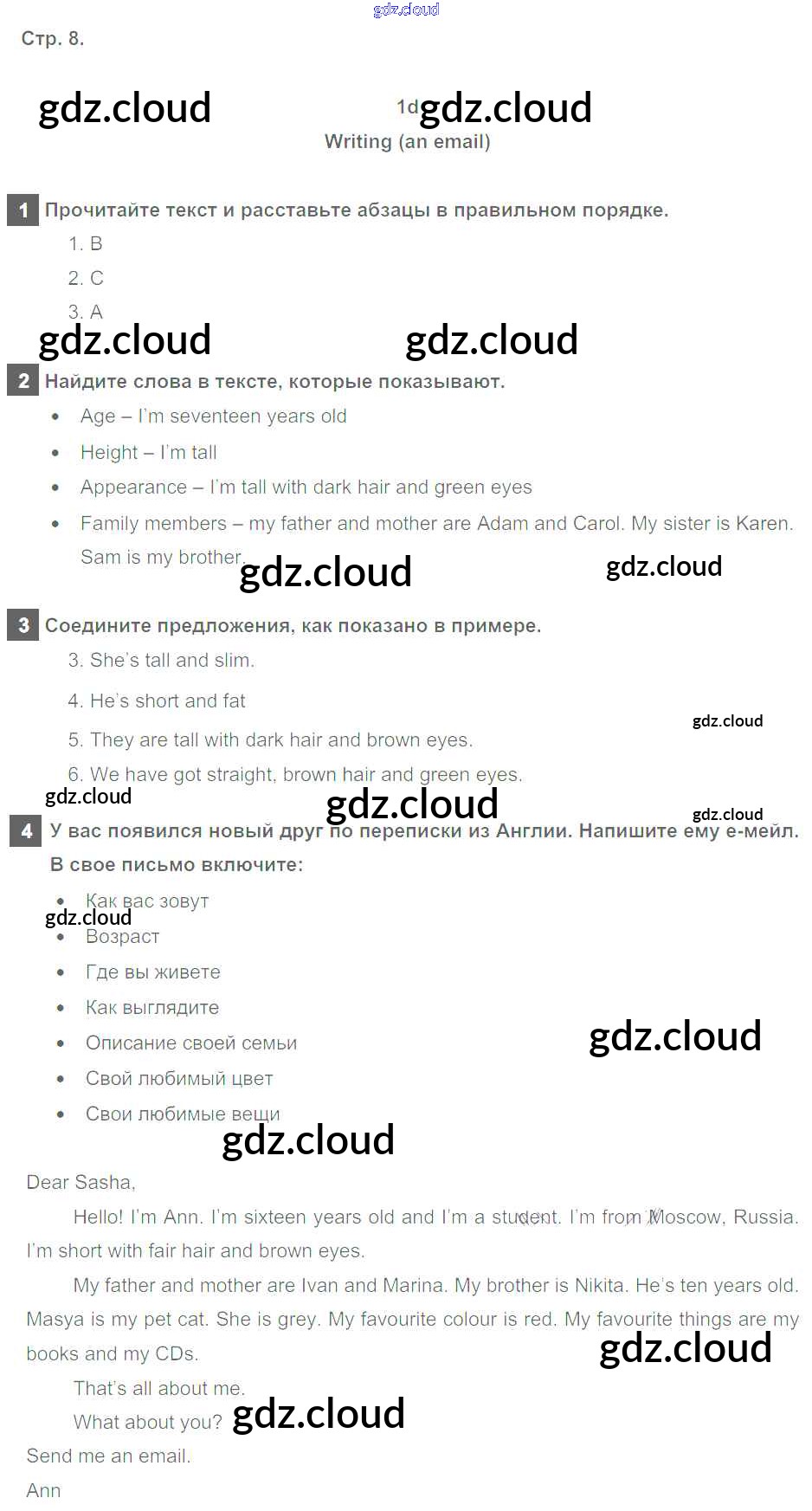 Ответ на задание 8 Рабочая тетрадь Английский язык  за 6 (шестой) класс Ваулина, Дули, Подоляко, Эванс Spotlight  2016