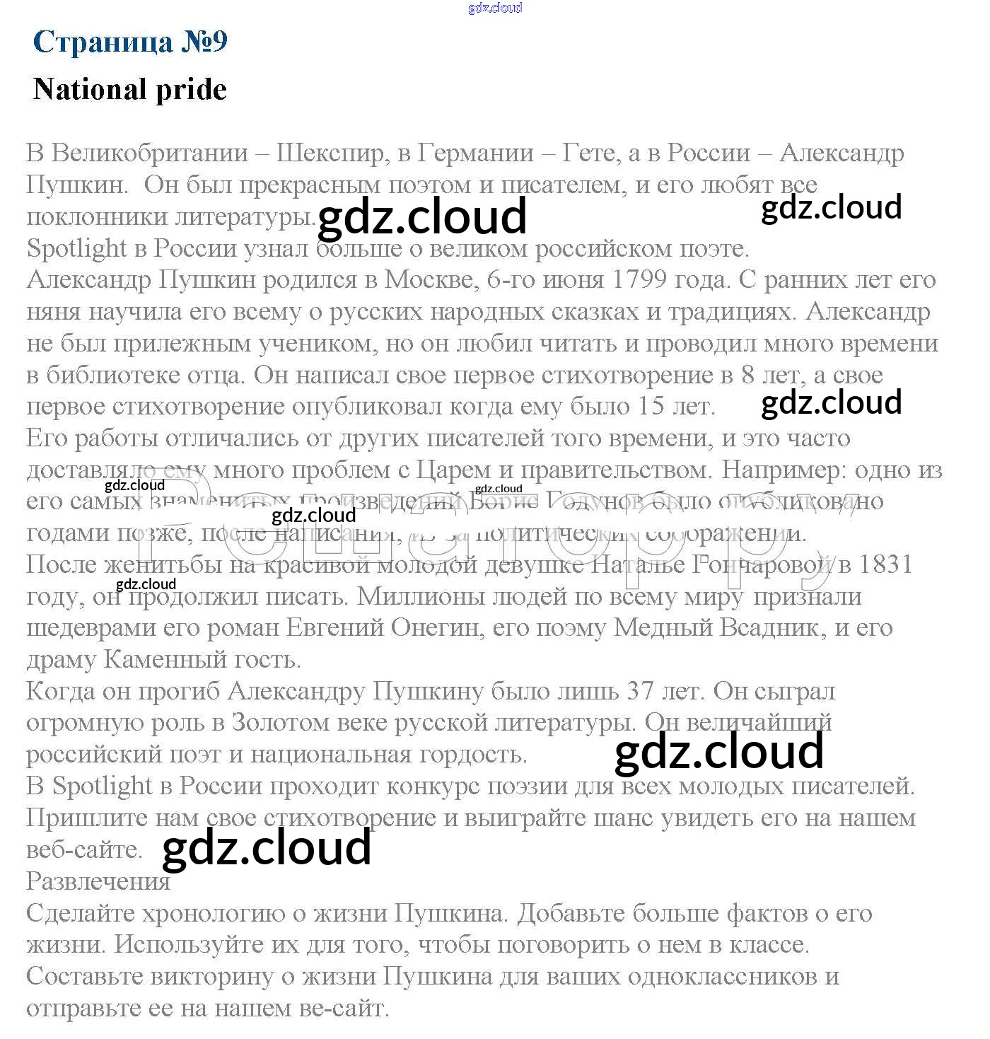 Ответ на задание 9 Рабочая тетрадь Английский язык  за 6 (шестой) класс Ваулина, Дули, Подоляко, Эванс Spotlight  2016