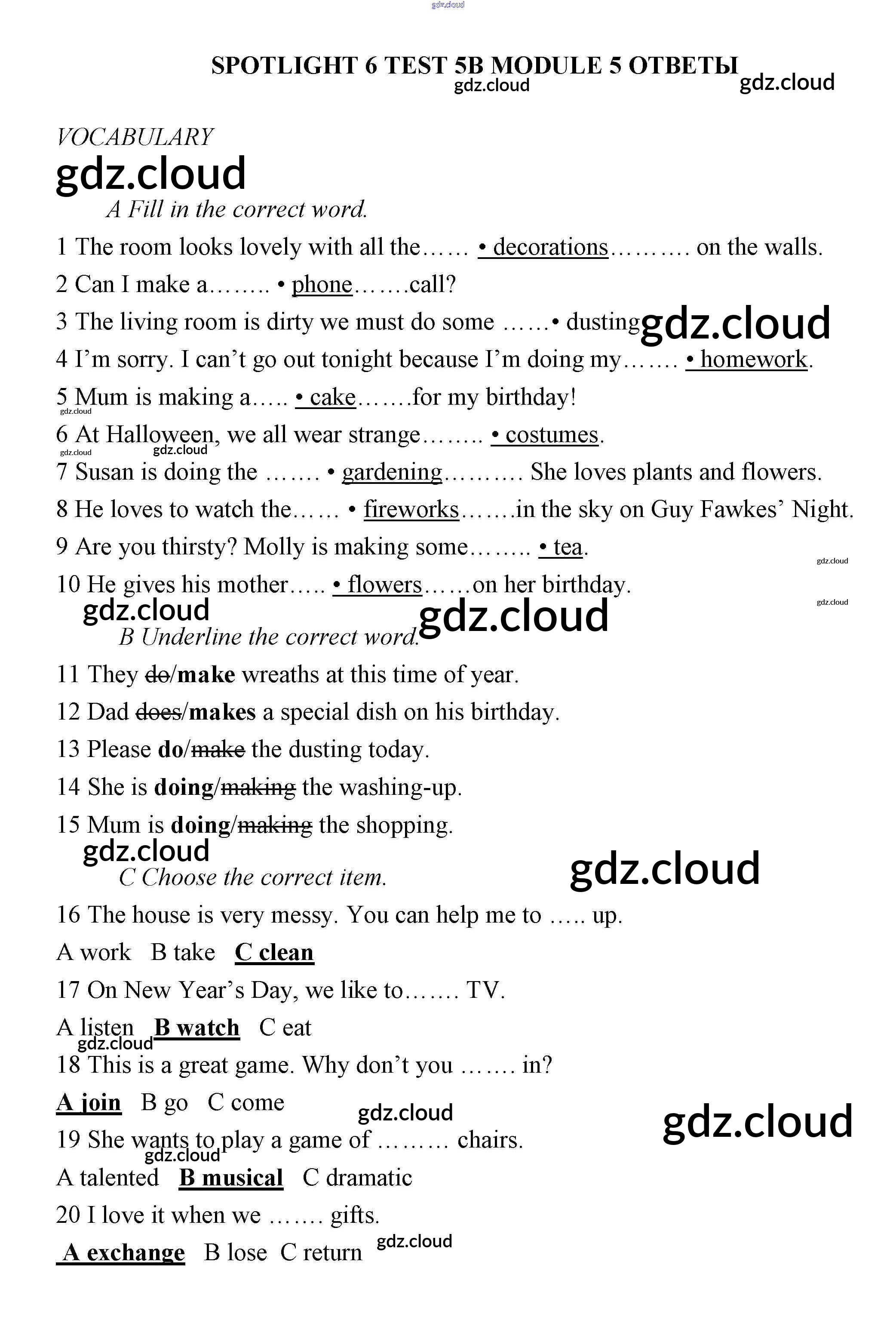 Ответы. Тесты по Английскому языку 6 класс Контрольные задания Ваулина Spotlight Просвещение