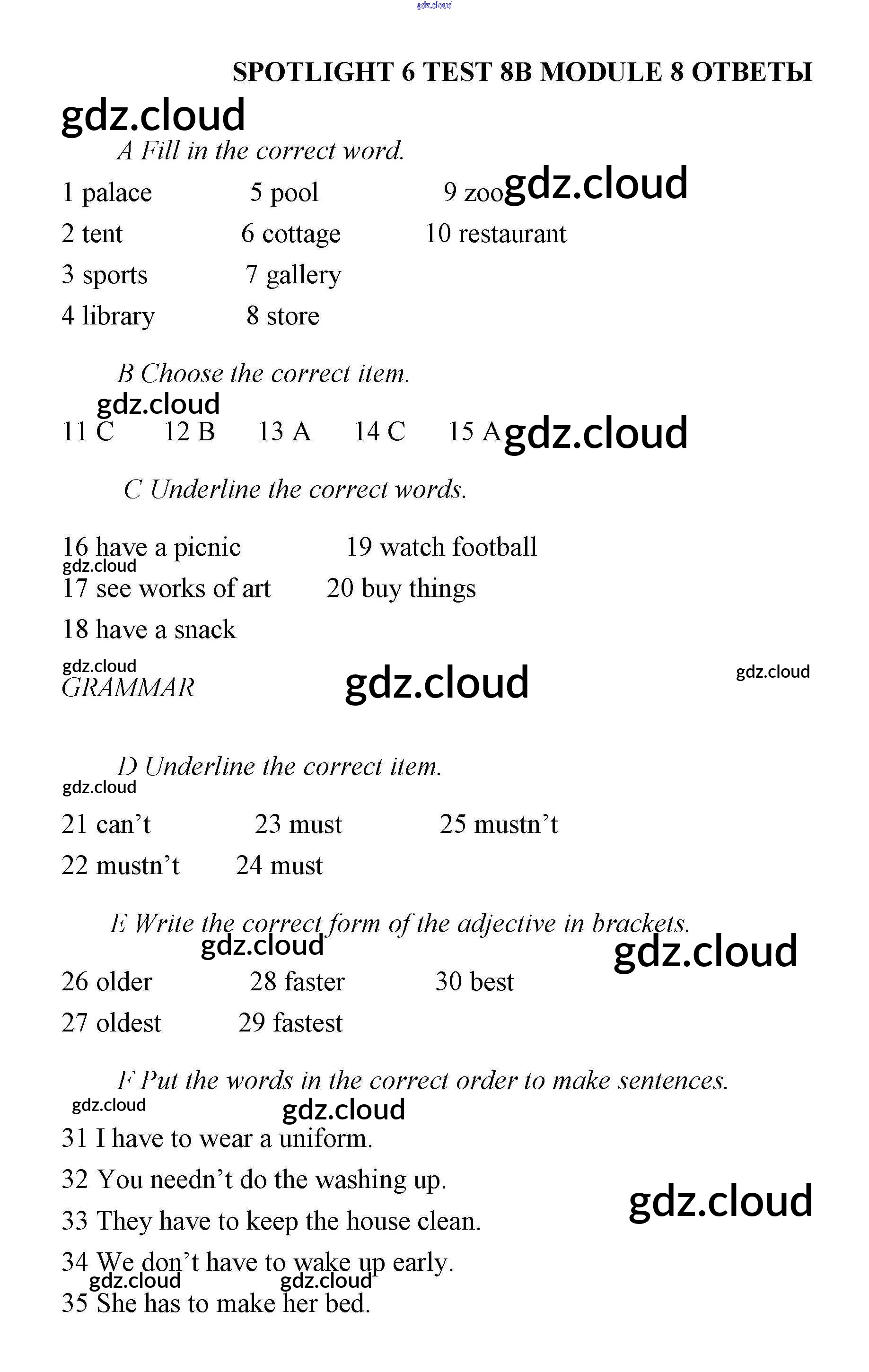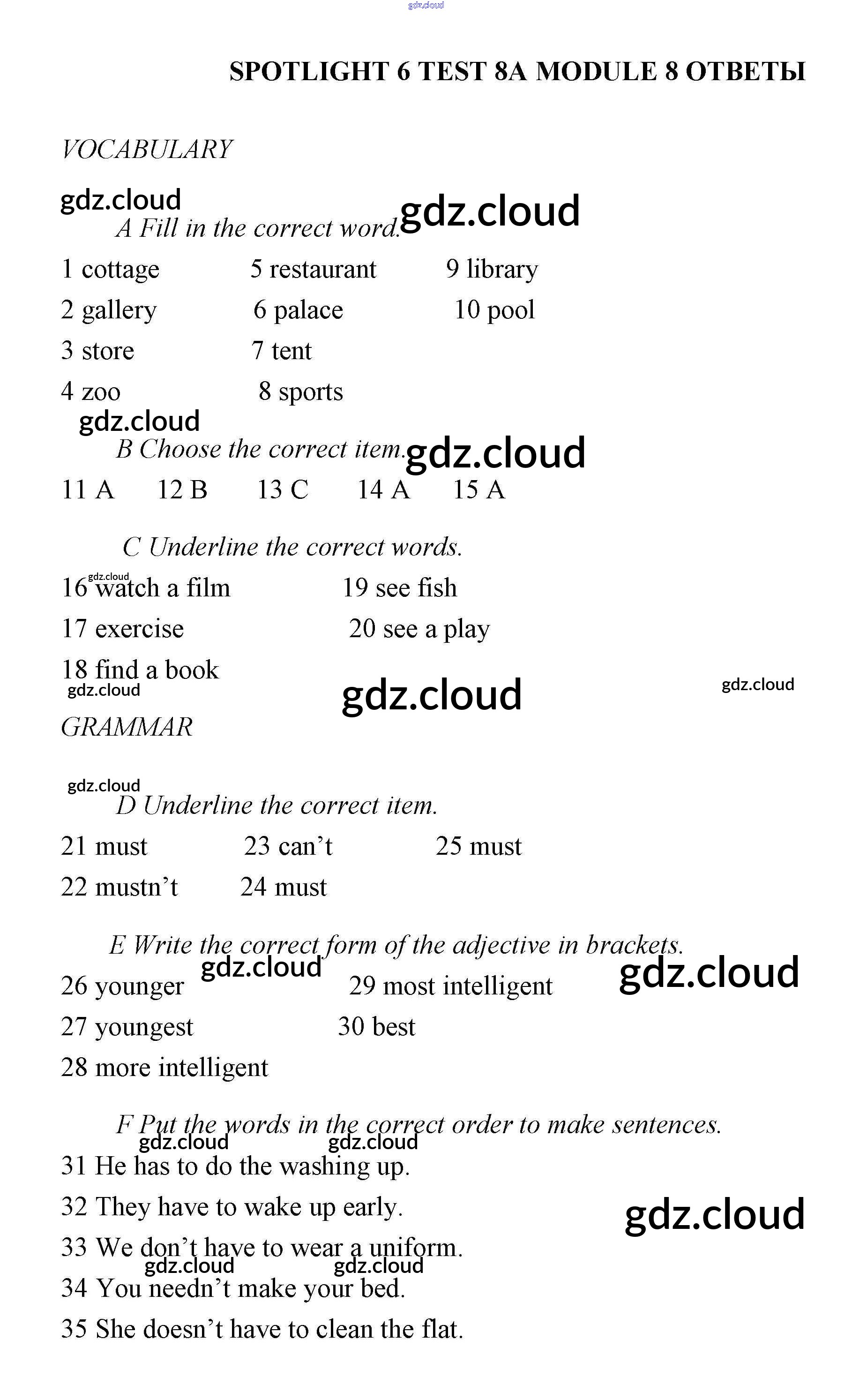 Ответы. Тесты по Английскому языку 6 класс Контрольные задания Ваулина Spotlight Просвещение