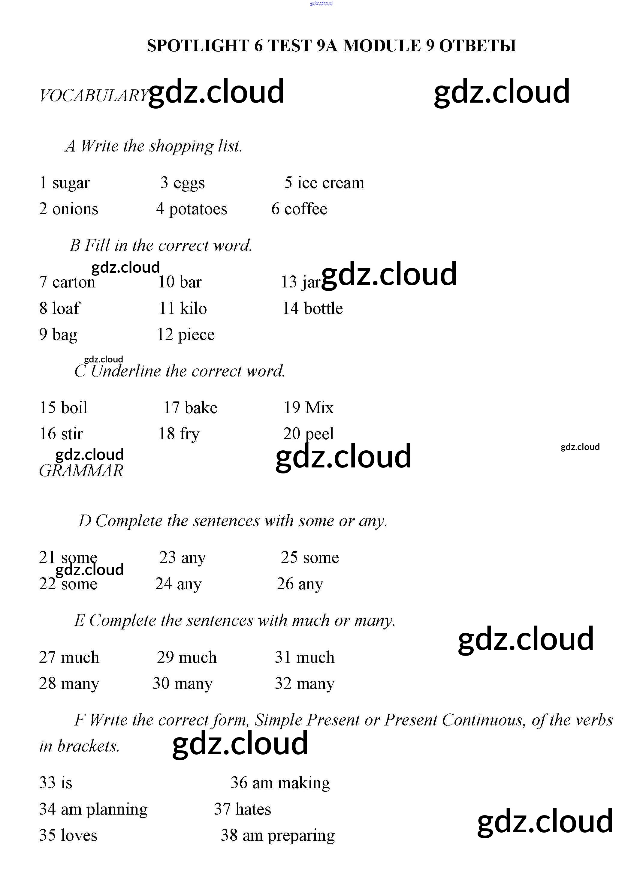 Ответы. Тесты по Английскому языку 6 класс Контрольные задания Ваулина Spotlight Просвещение