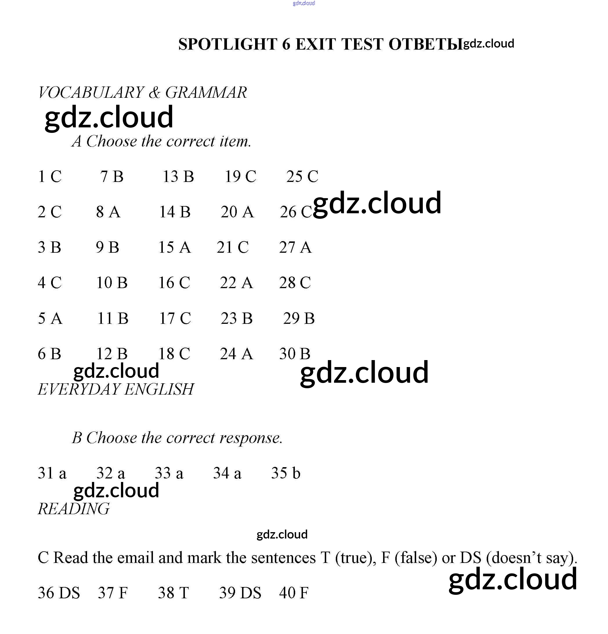 Ответ на задание Exit Контрольные задания Английский язык  за 6 (шестой) класс Ваулина, Дули, Подоляко, Эванс Spotlight  2017