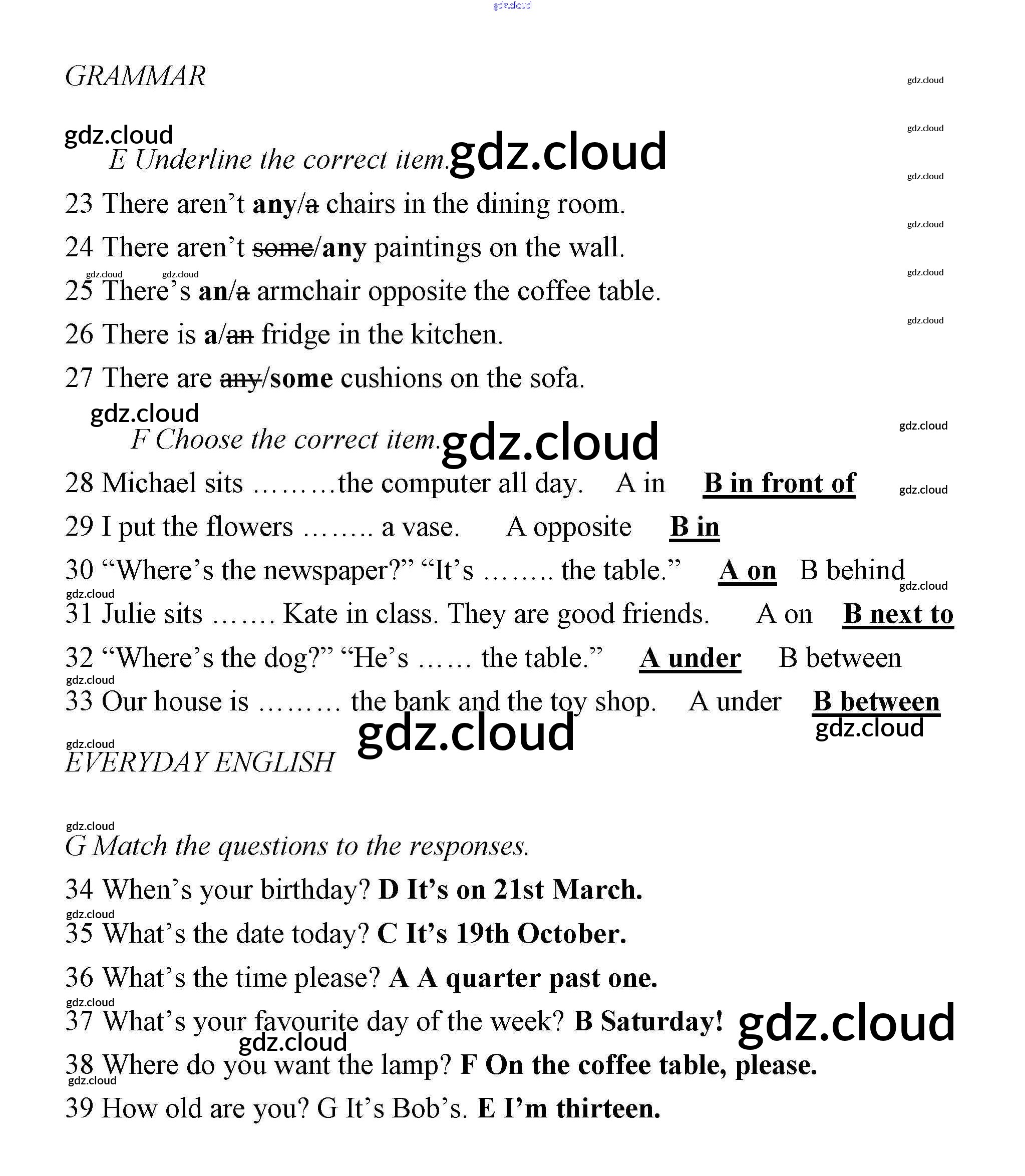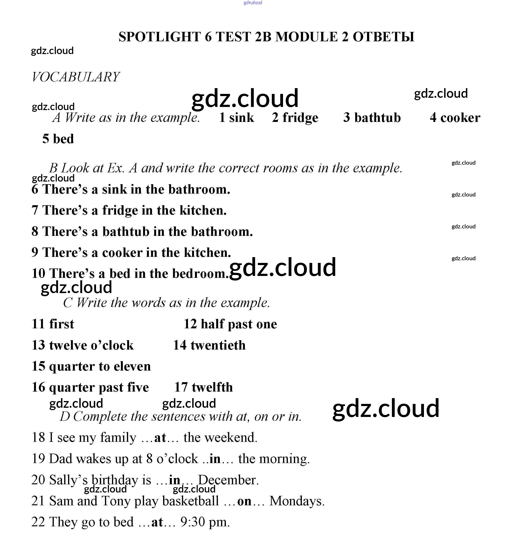 Ответы. Тесты по Английскому языку 6 класс Контрольные задания Ваулина Spotlight Просвещение