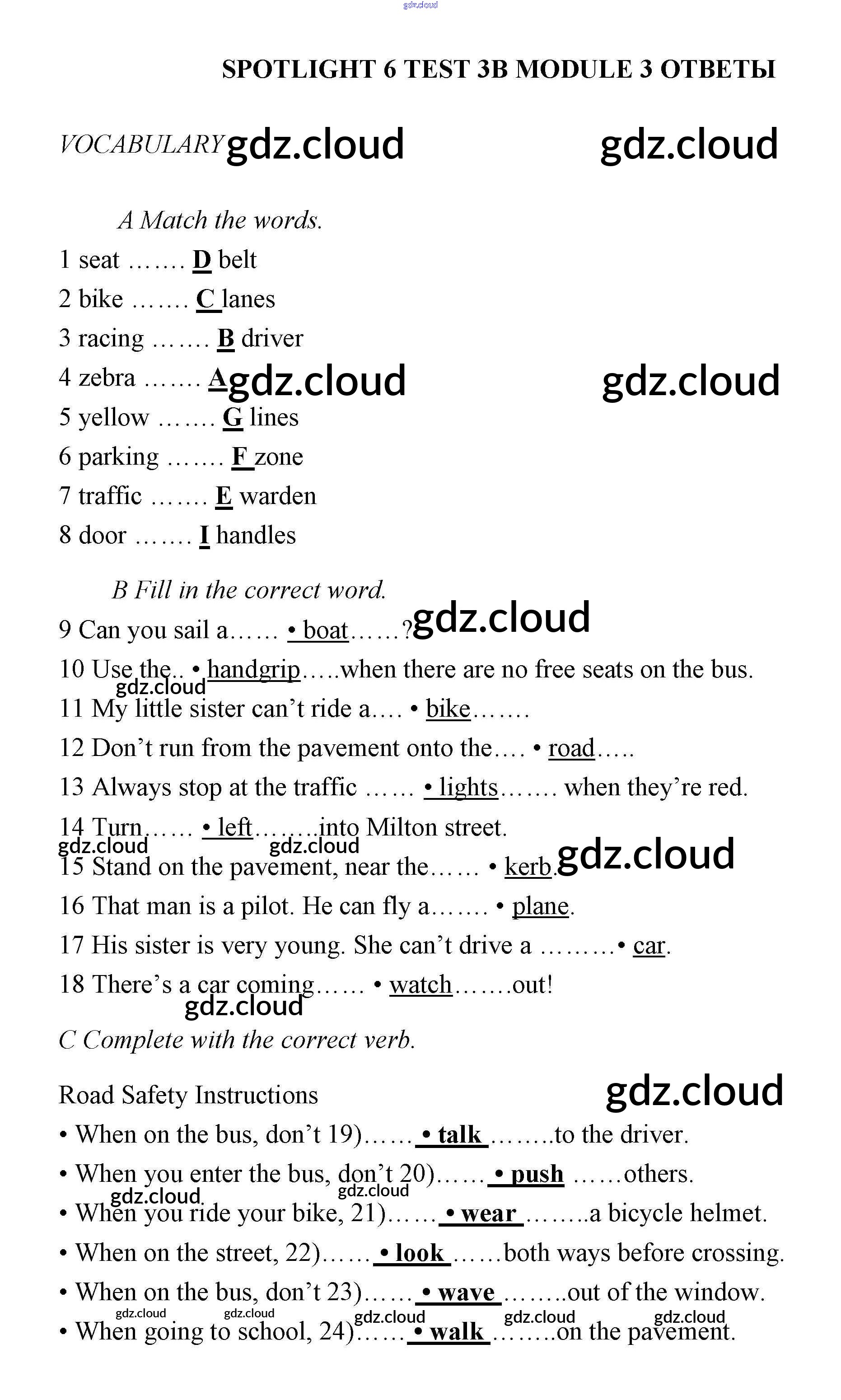 Ответы. Тесты по Английскому языку 6 класс Контрольные задания Ваулина Spotlight Просвещение