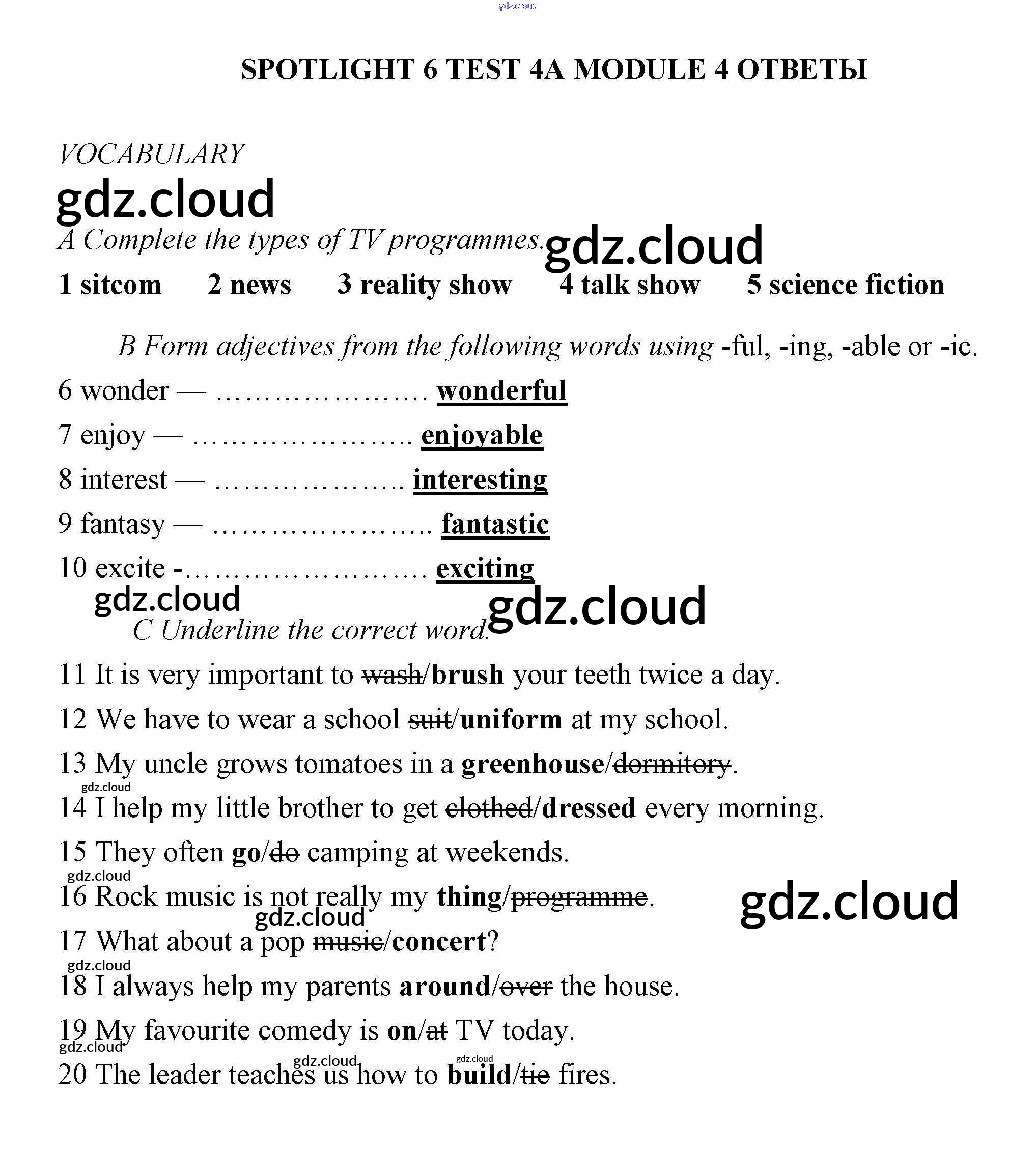 Ответы. Тесты по Английскому языку 6 класс Контрольные задания Ваулина Spotlight Просвещение